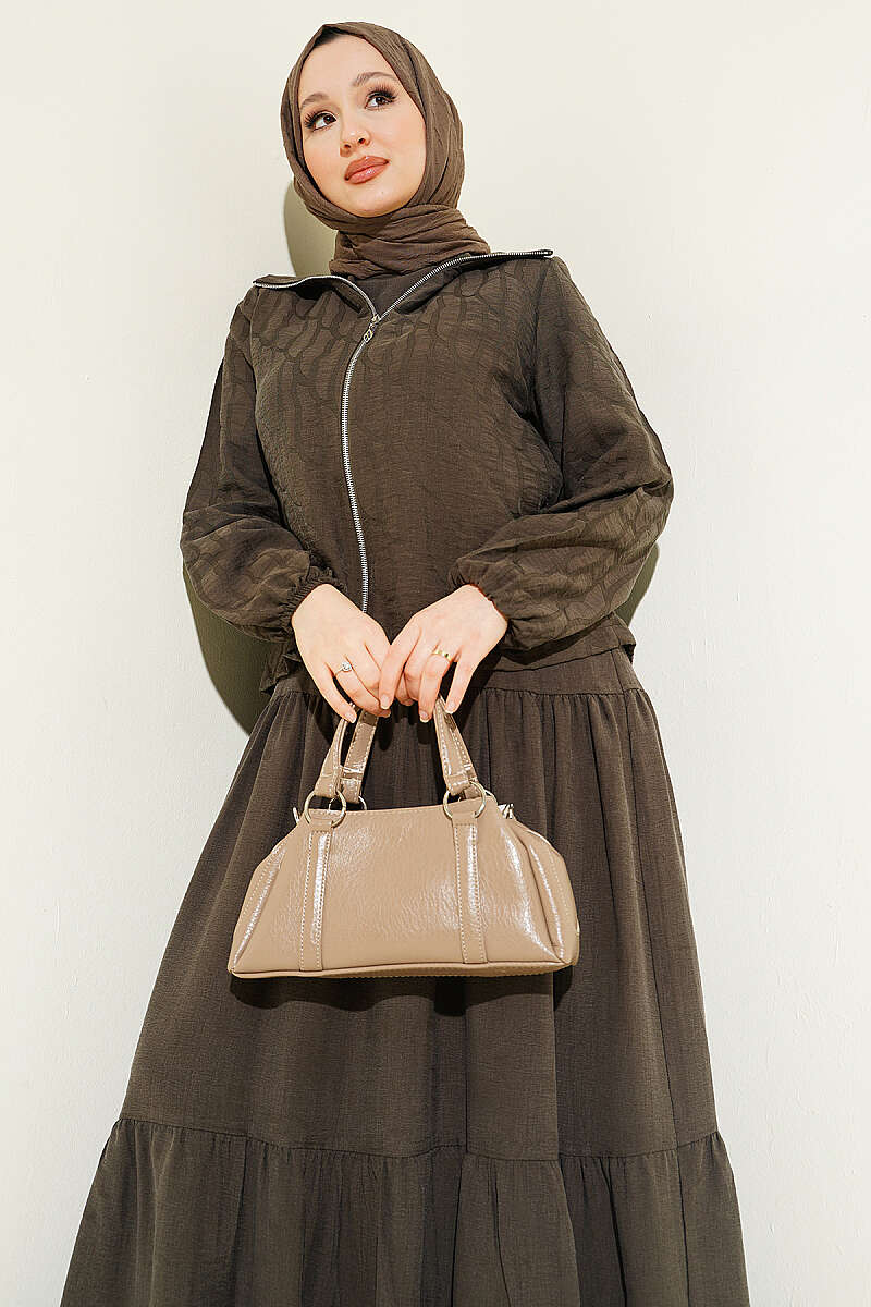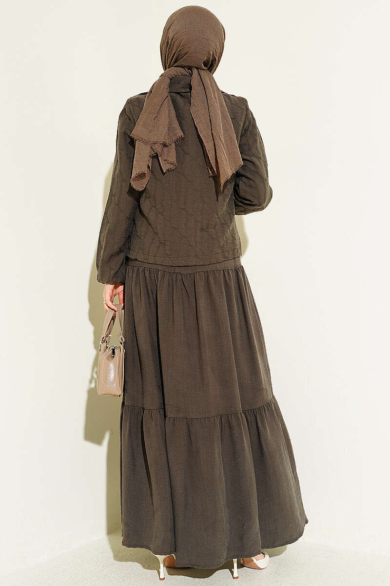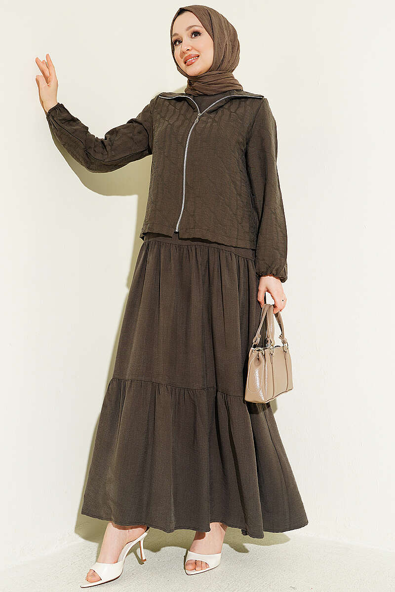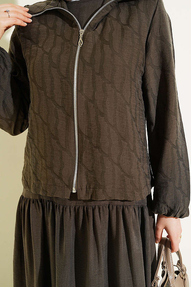 Leopar Fularlı Modal Etekli İkili Takım Latte