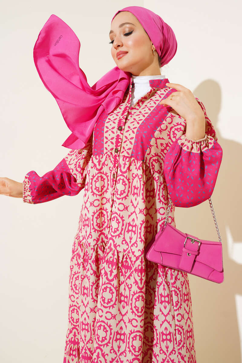 Pelerin Detaylı Pileli Triko Elbise Ekru