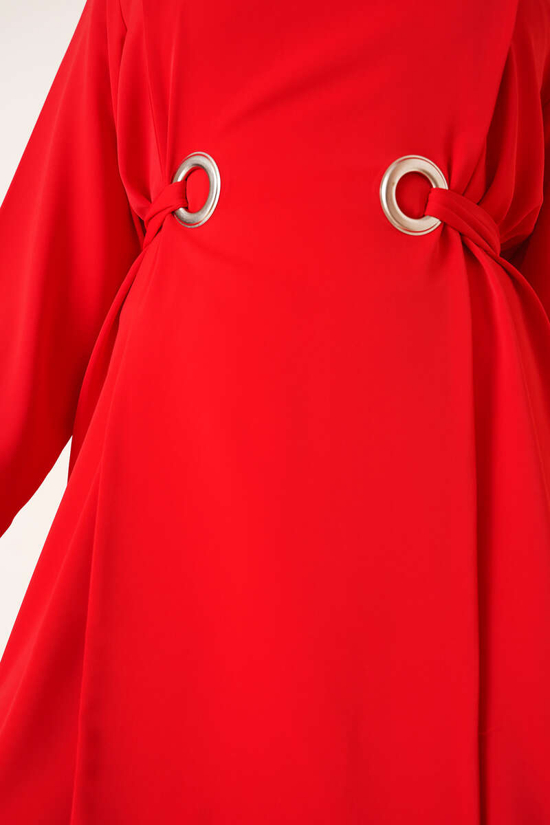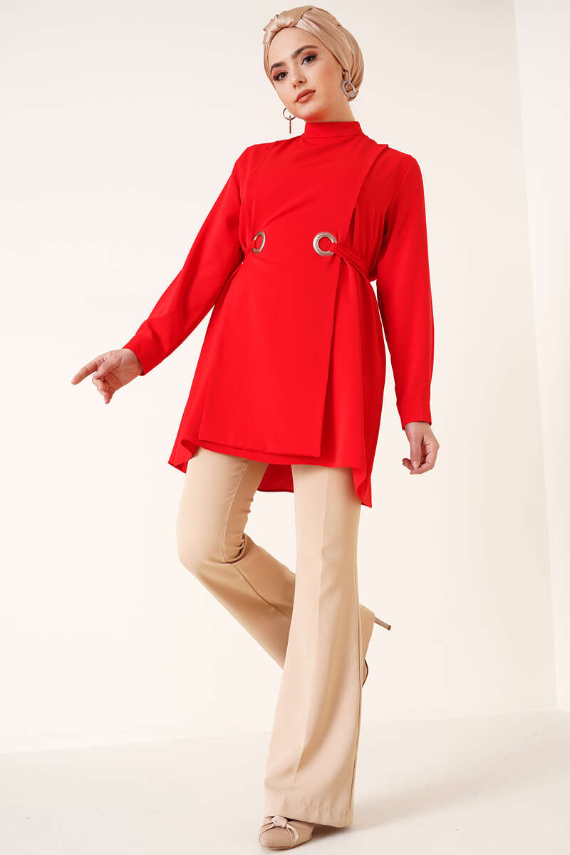 Yeni sezon tuniğimiz önünde yakasından gelen kuşgözlü katıyla dikkat çekmektedir. Beli kuşaklı olan tuniğimizin iki adet kemer köprüsü bulunmaktadır. Ense düğmesi bulunan tuniğimiz hakim yakadır.