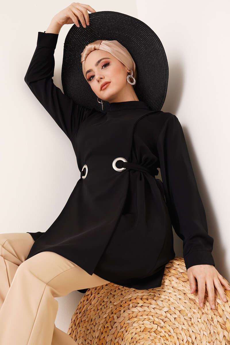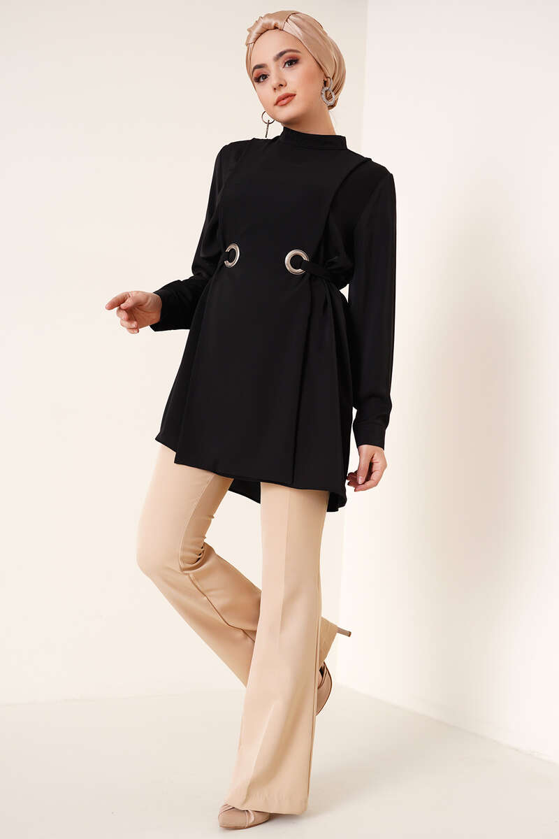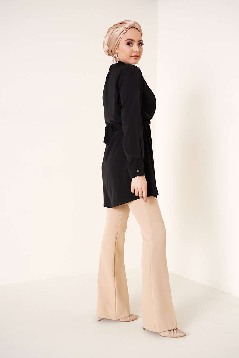 Yeni sezon tuniğimiz önünde yakasından gelen kuşgözlü katıyla dikkat çekmektedir. Beli kuşaklı olan tuniğimizin iki adet kemer köprüsü bulunmaktadır. Ense düğmesi bulunan tuniğimiz hakim yakadır.