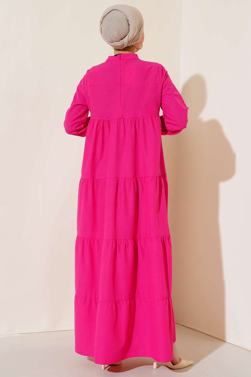 Yaz ayı trend rengine sahip olan yeni sezon model elbise sizlerle... Dik yakalı, enseden fermuarlıdır. Elbisenin göğüs kısmındaki kumaş detayıyla hoş bir görünüm kazanmaktadır. Esnek büzgü kolludur. Etek ucunda 3 adet kat görünüme sahiptir. Salaş kesime sahip olan elbise vücut hatlarınızı belli etmeyecek forma sahiptir. Astarsız olan elbise iç göstermeyen tok gömlek kumaşa sahiptir. Geniş renk skalasıyla her zevke hitap edecek olan elbisenin dolabınızda yer almasının tam zamanı!