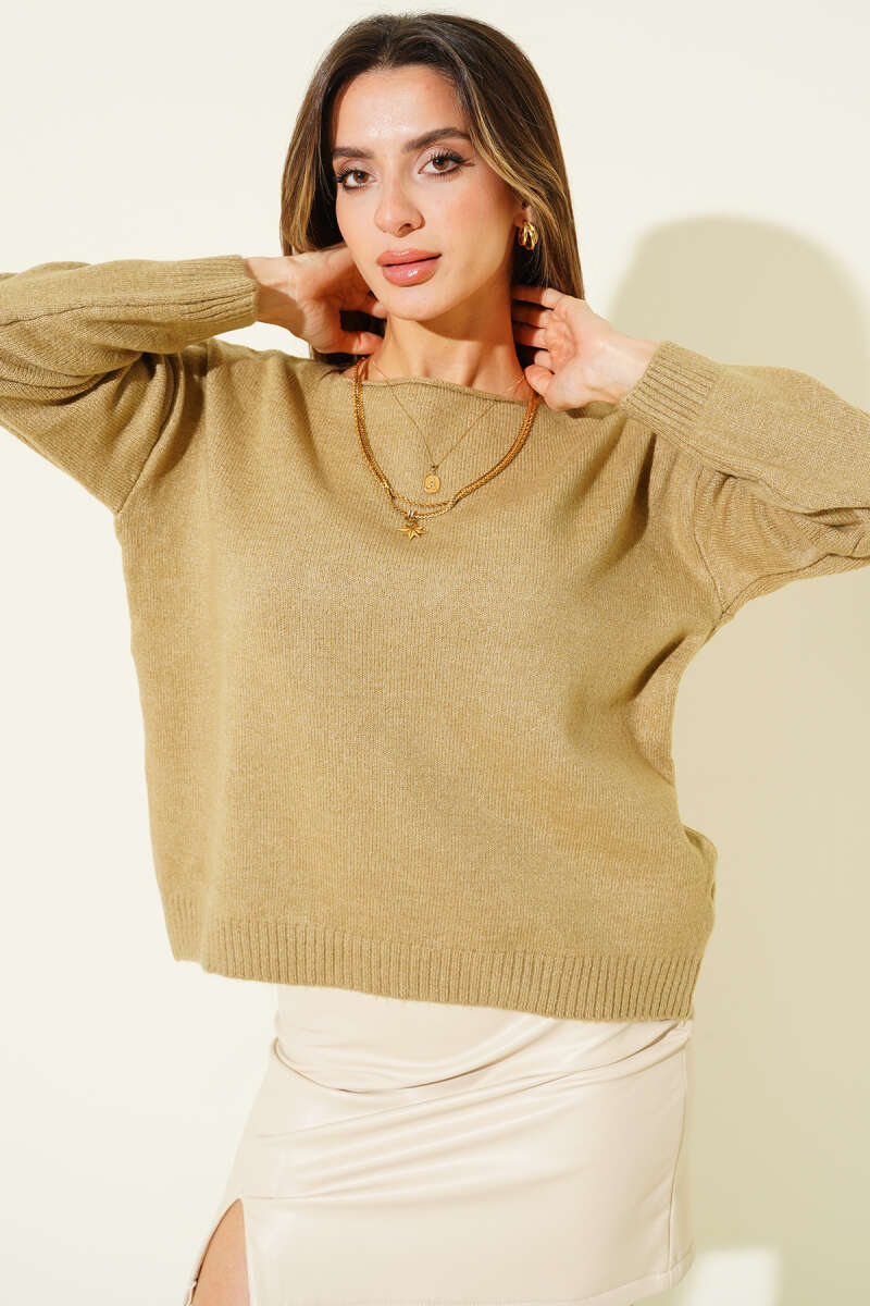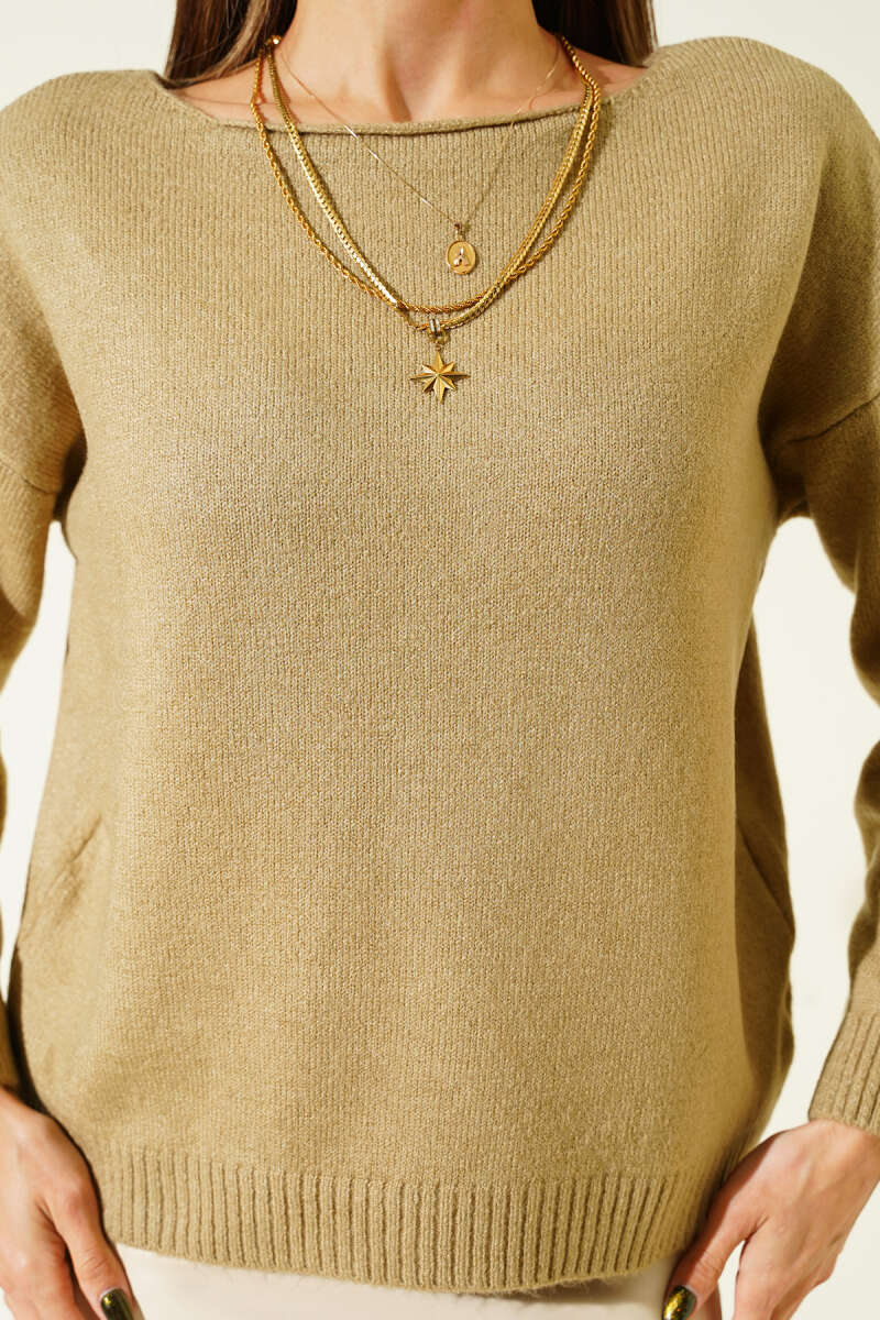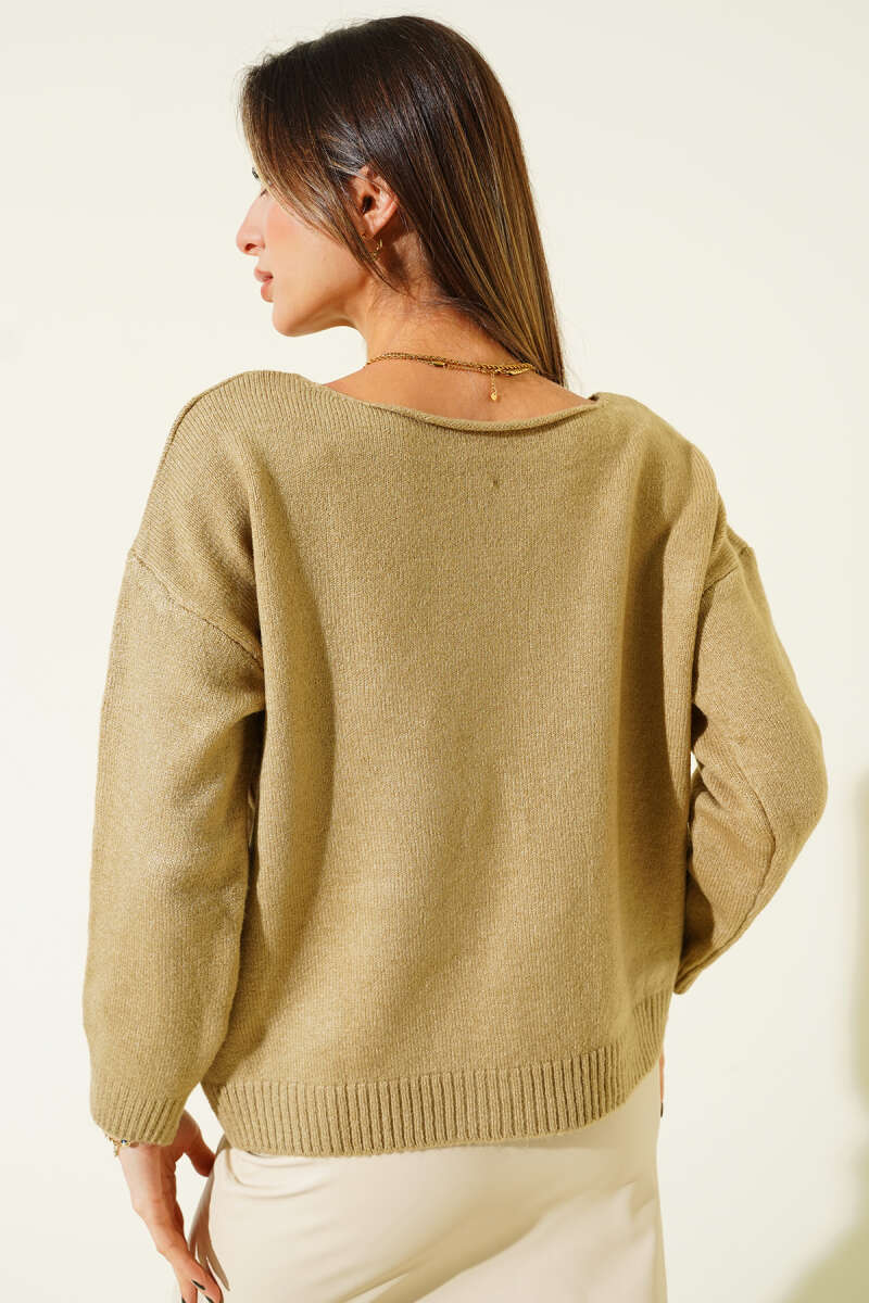 Baklava Desenli Bağlamalı Triko Süveter Kahve