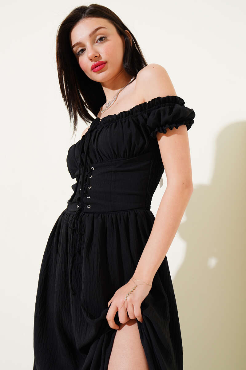 Kapüşonlu Yan Bağlamalı Sweatshirt Siyah