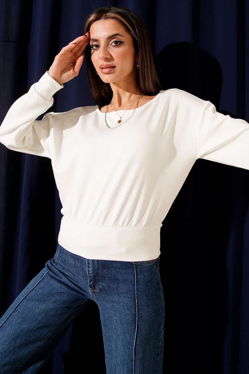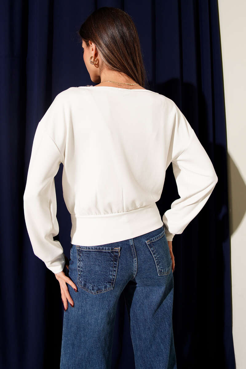 Tül Kol Büzgülü Sandy Bluz Beyaz