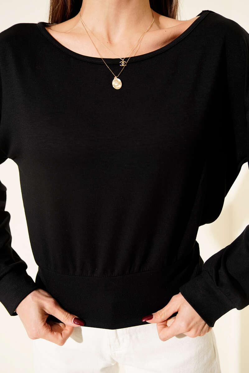 Kayık Yaka Loyşa Bluz Siyah