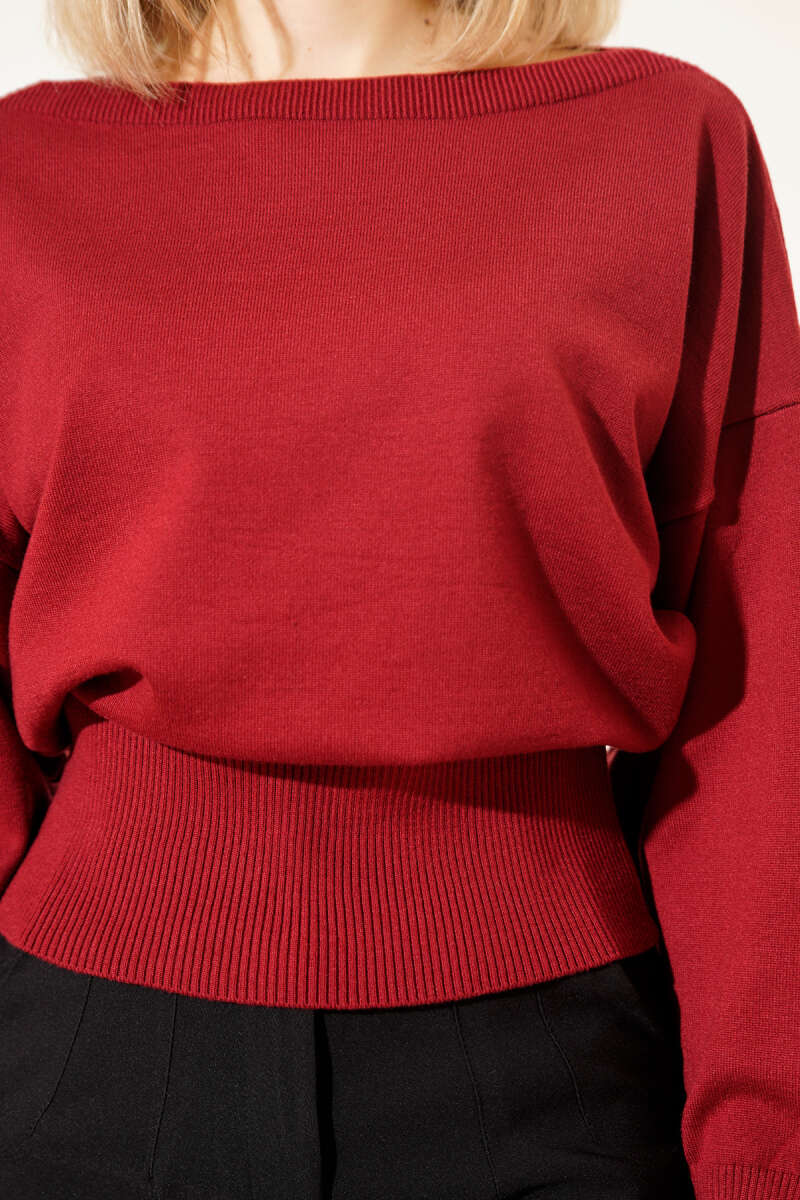 Fitilli Kayık Yaka Triko Bluz Pembe