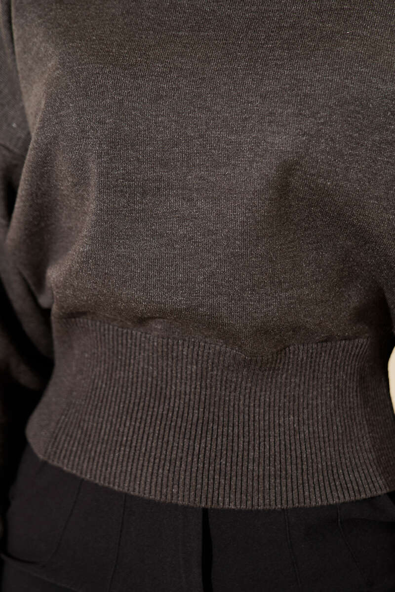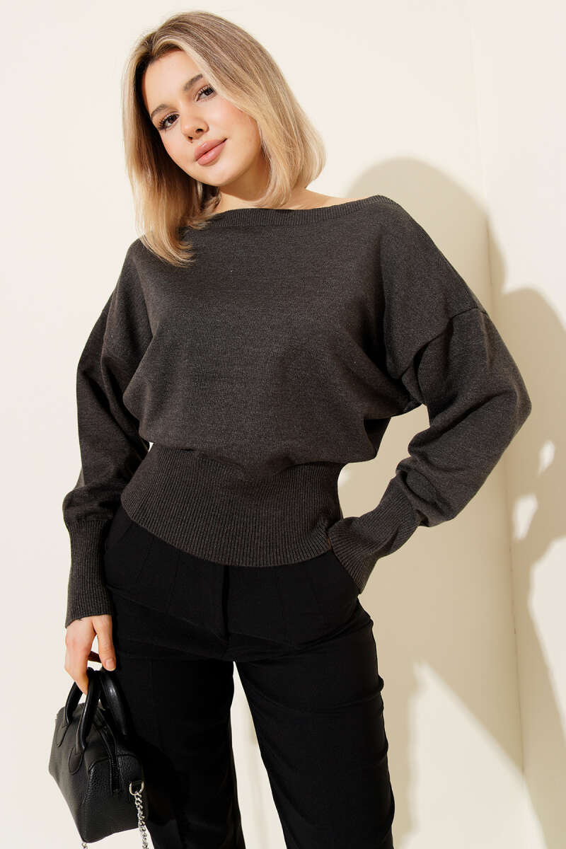 Kayık Yaka Salaş Triko Bluz Füme