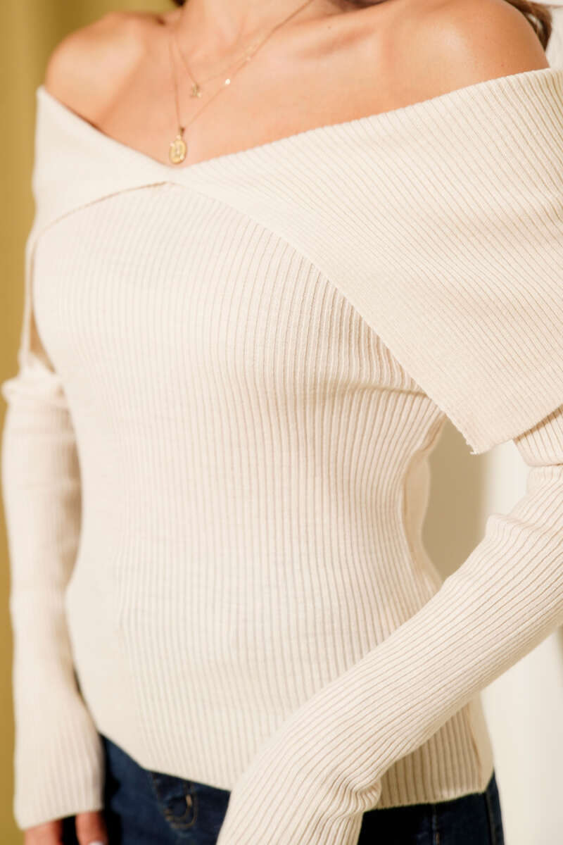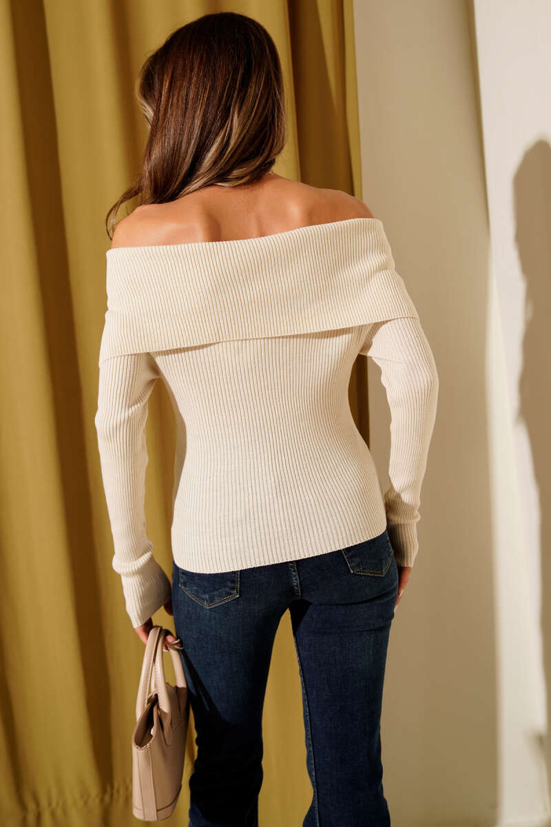 Bisiklet Yaka Örme Triko Erkek Kazak Ekru