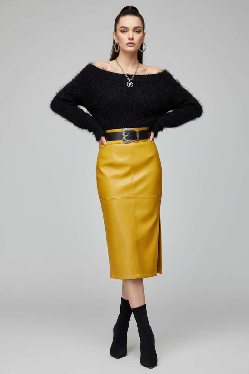 Kayık Yaka Tüylü Kazak Siyah
