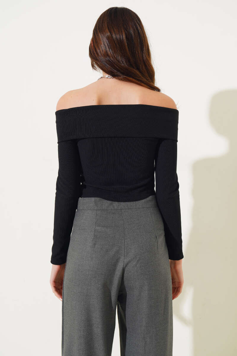 Yaka Taşlı Kapüşonlu Tensel İkili Takım Siyah