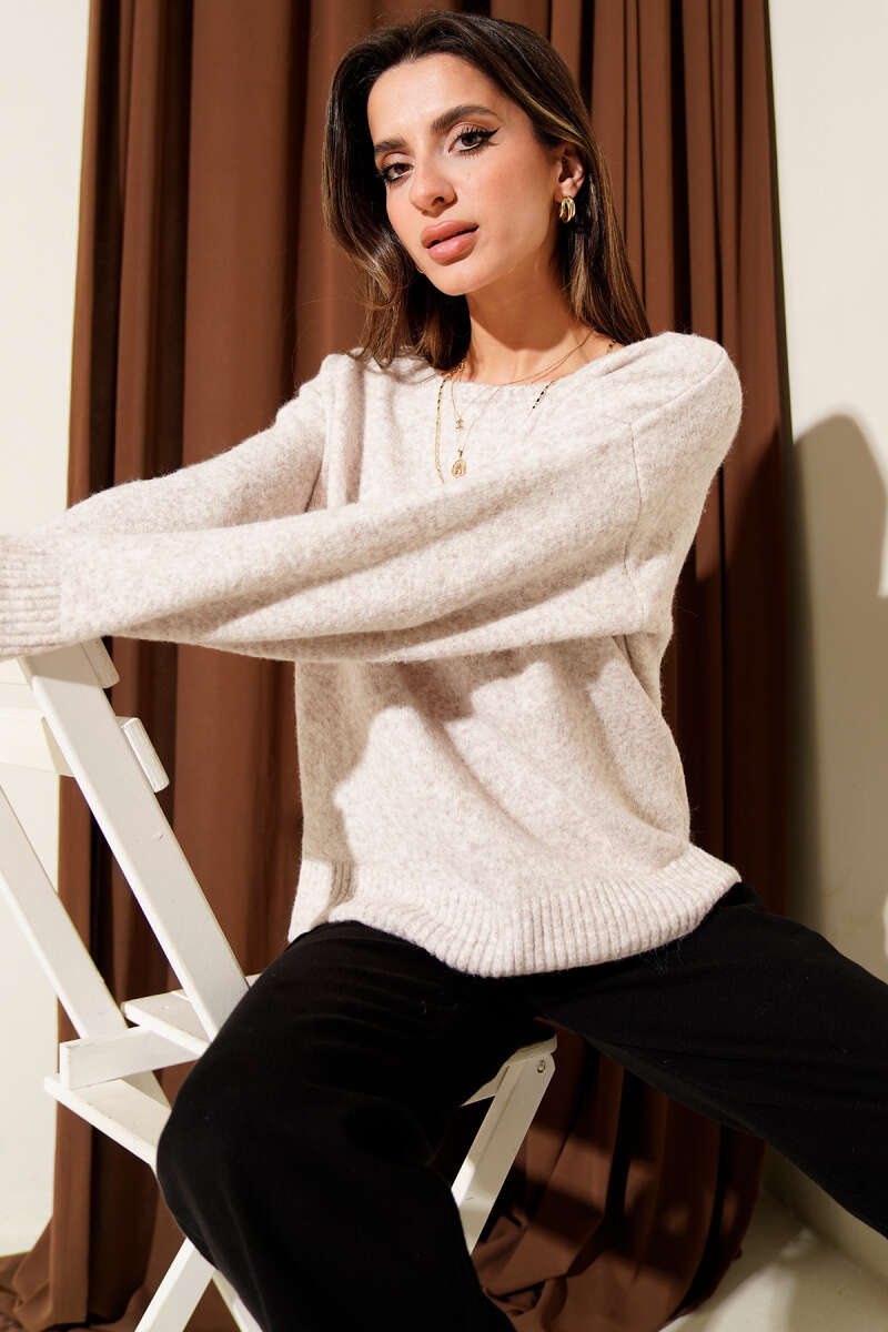 Bisiklet Yaka Sakal Detaylı Kazak Siyah