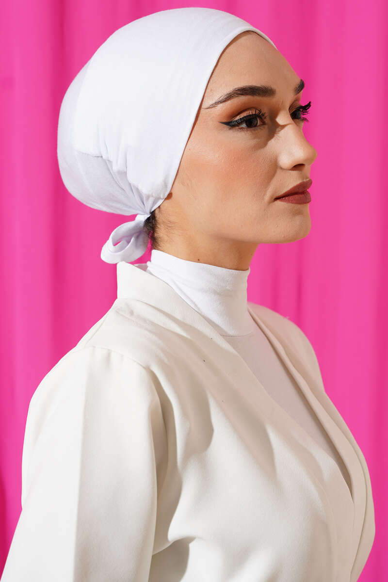 Fırfırlı Kaymaz Viskon Bone Beyaz