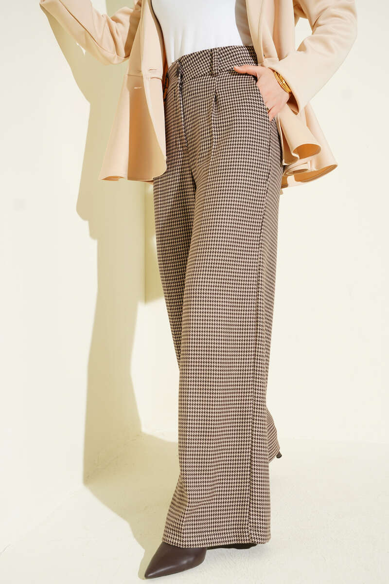 Bel Lastikli Çımalı Loyşa Pantolon Kahve