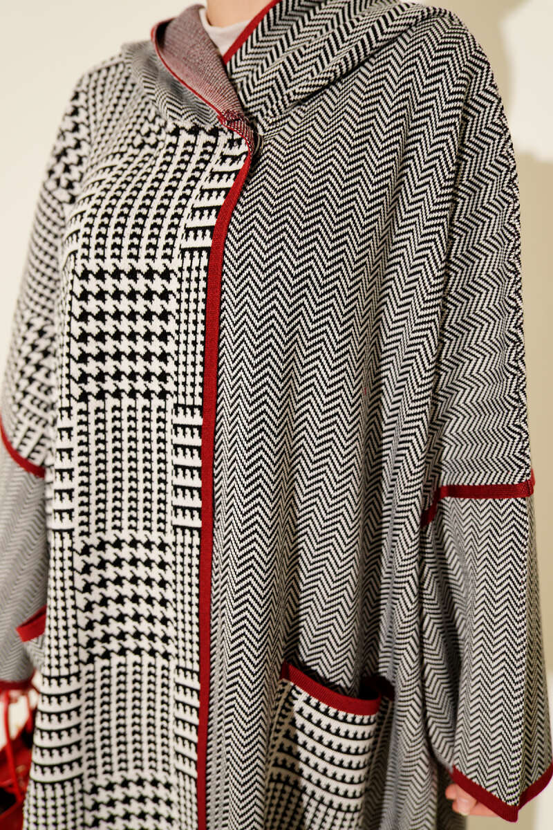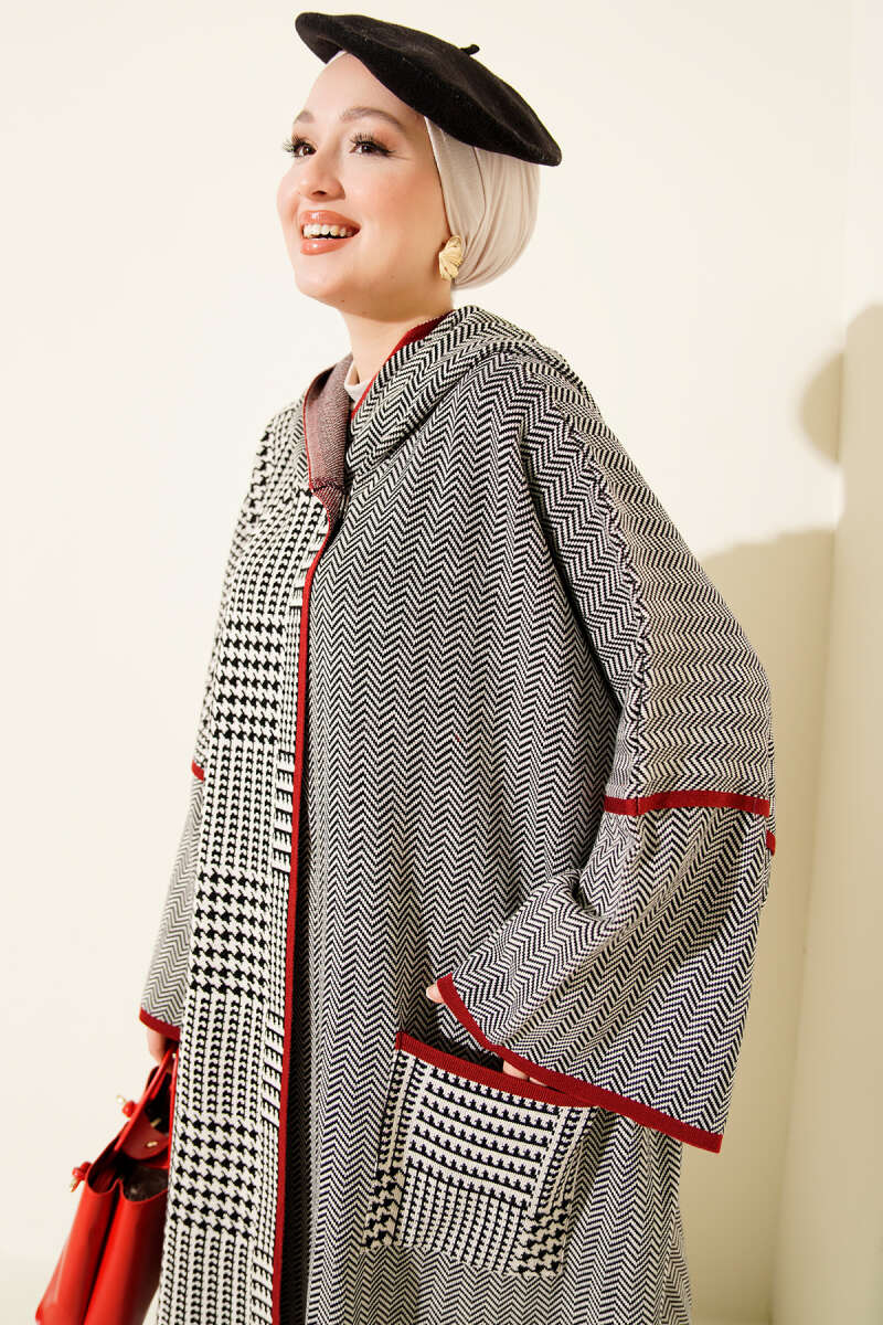 Çıtçıt Düğmeli Kapüşonlu Triko Panço Bordo