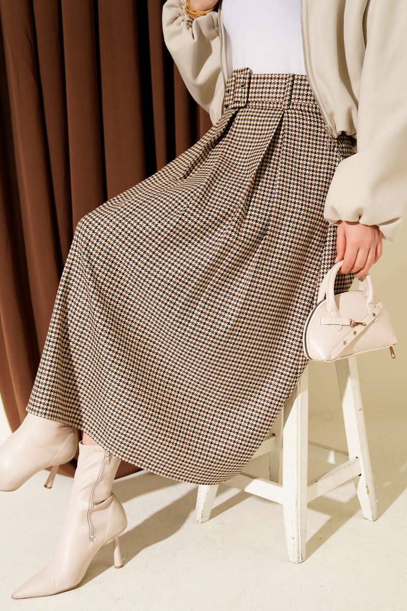 İnce Kemerli Süet Etek Taba