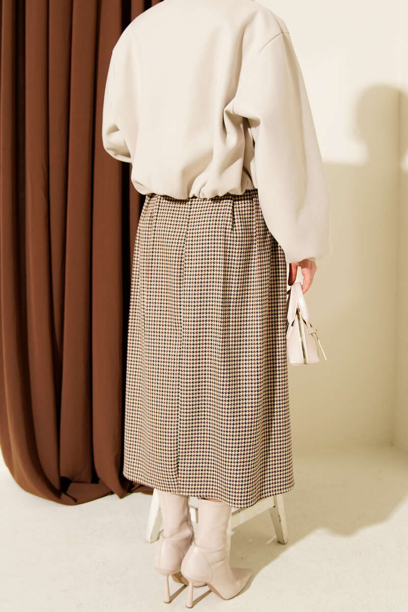 Bel Lastikli Kloş Kaşe Etek Füme