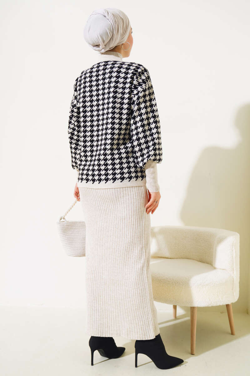 Taşlı Baklava Desen Triko İkili Takım Ekru