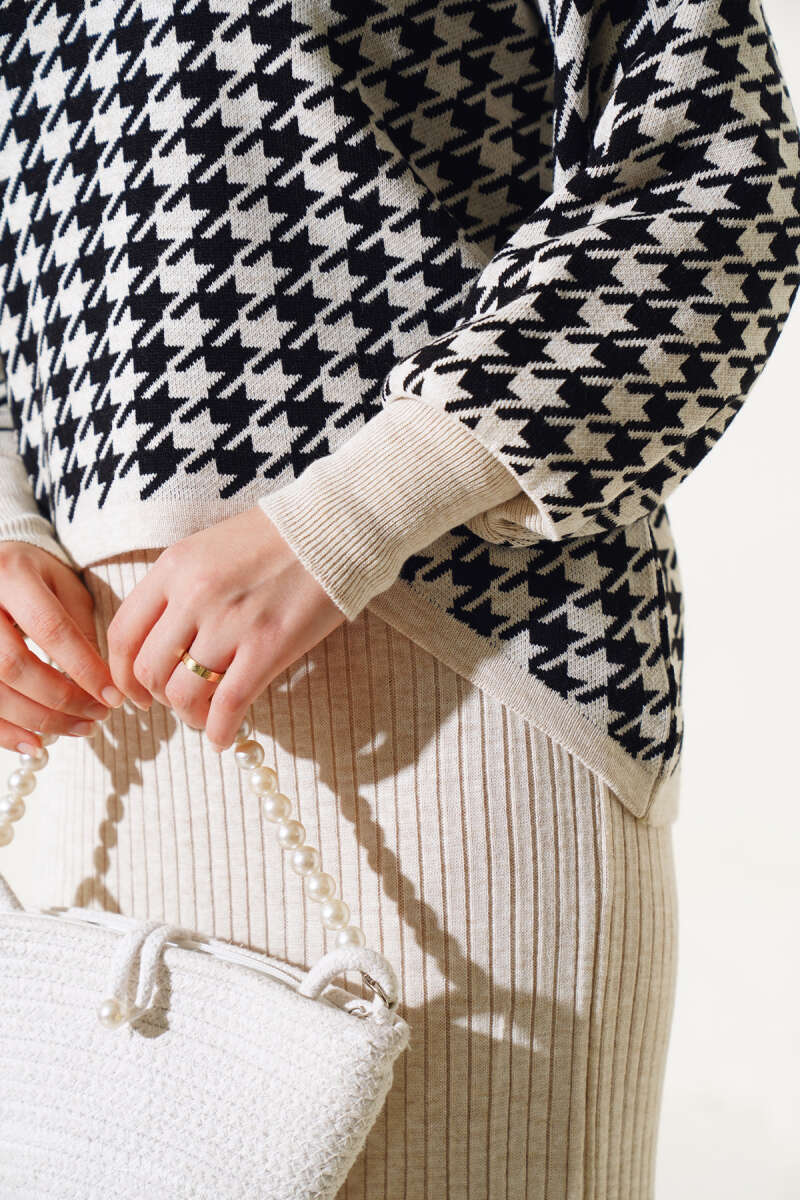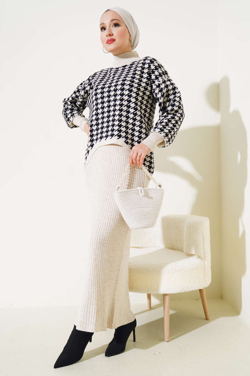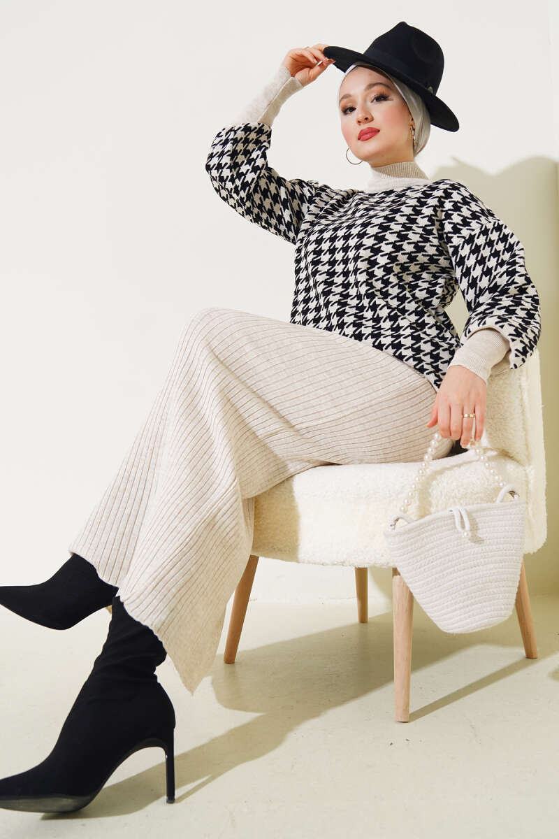 Kazayağı Desen Triko Jile İkili Takım Bej