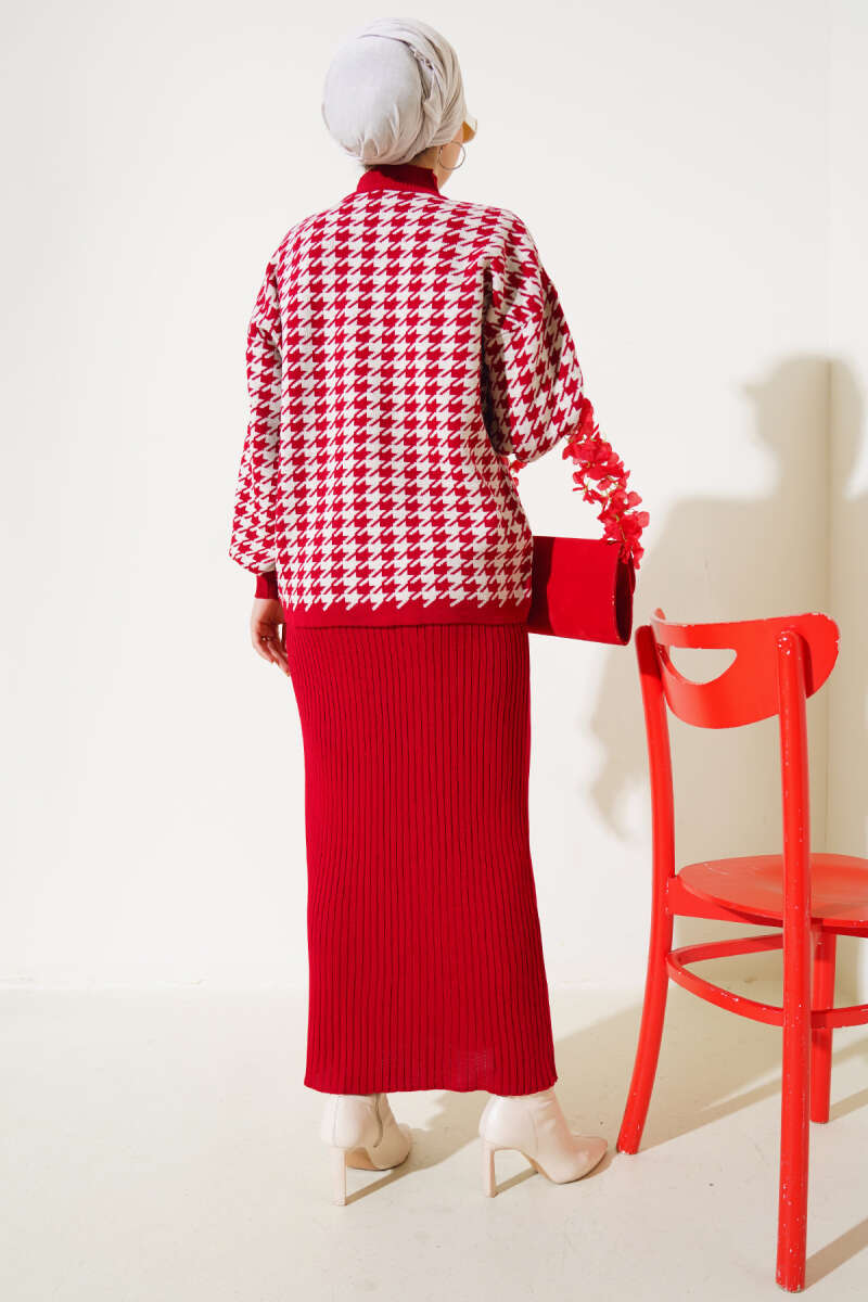 Taşlı Baklava Desen Triko İkili Takım Kahve