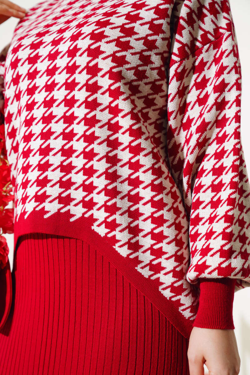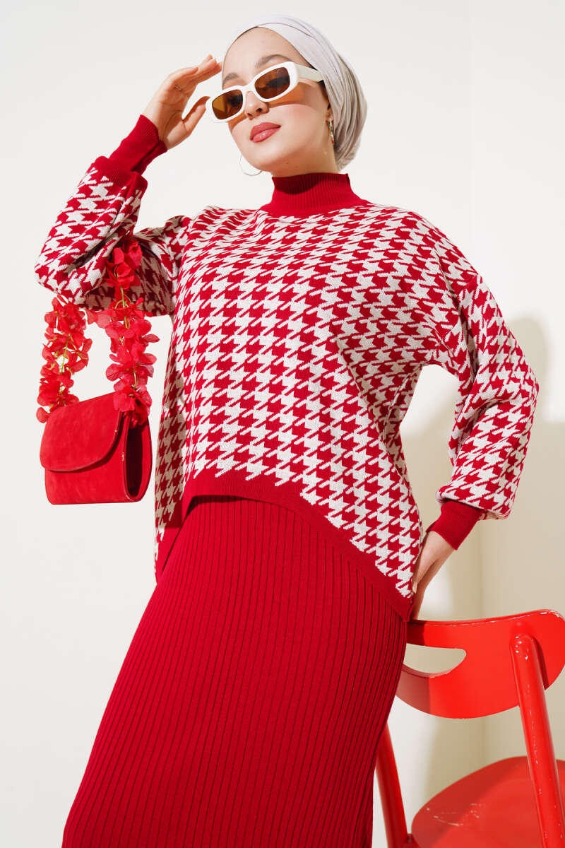 Kazayağı Desen Triko Jile İkili Takım Kırmızı