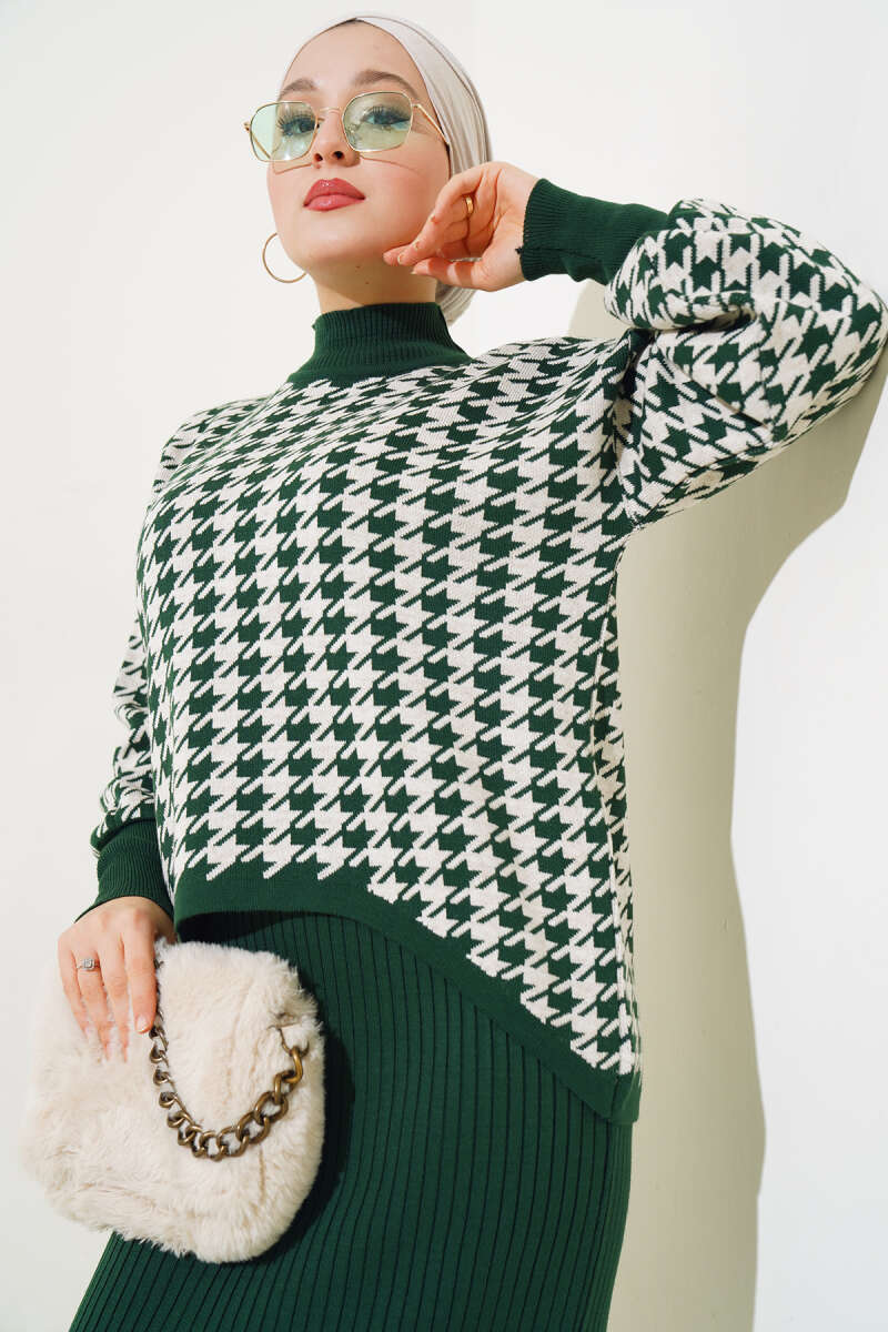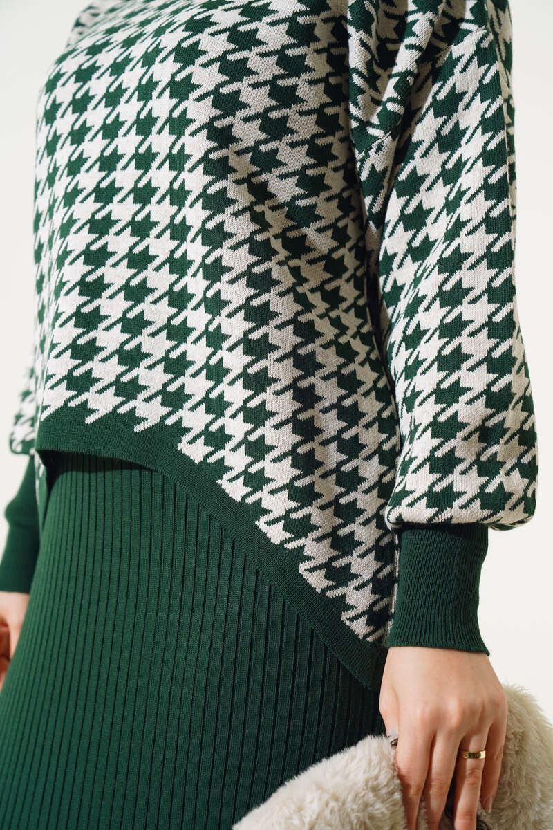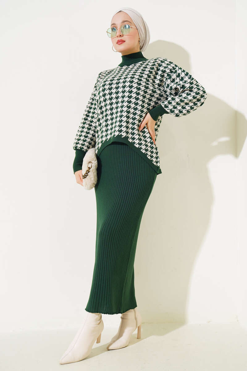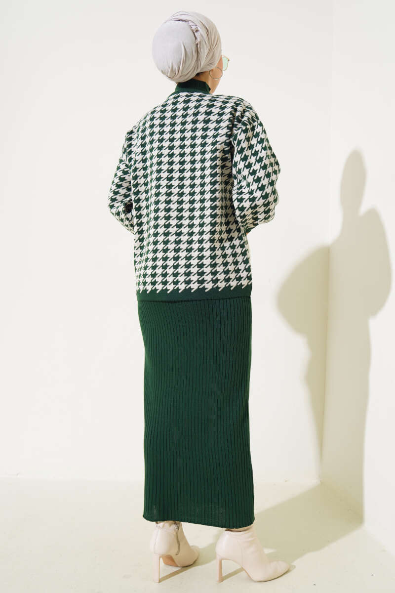 Kazayağı Desen Triko Jile İkili Takım Zümrüt