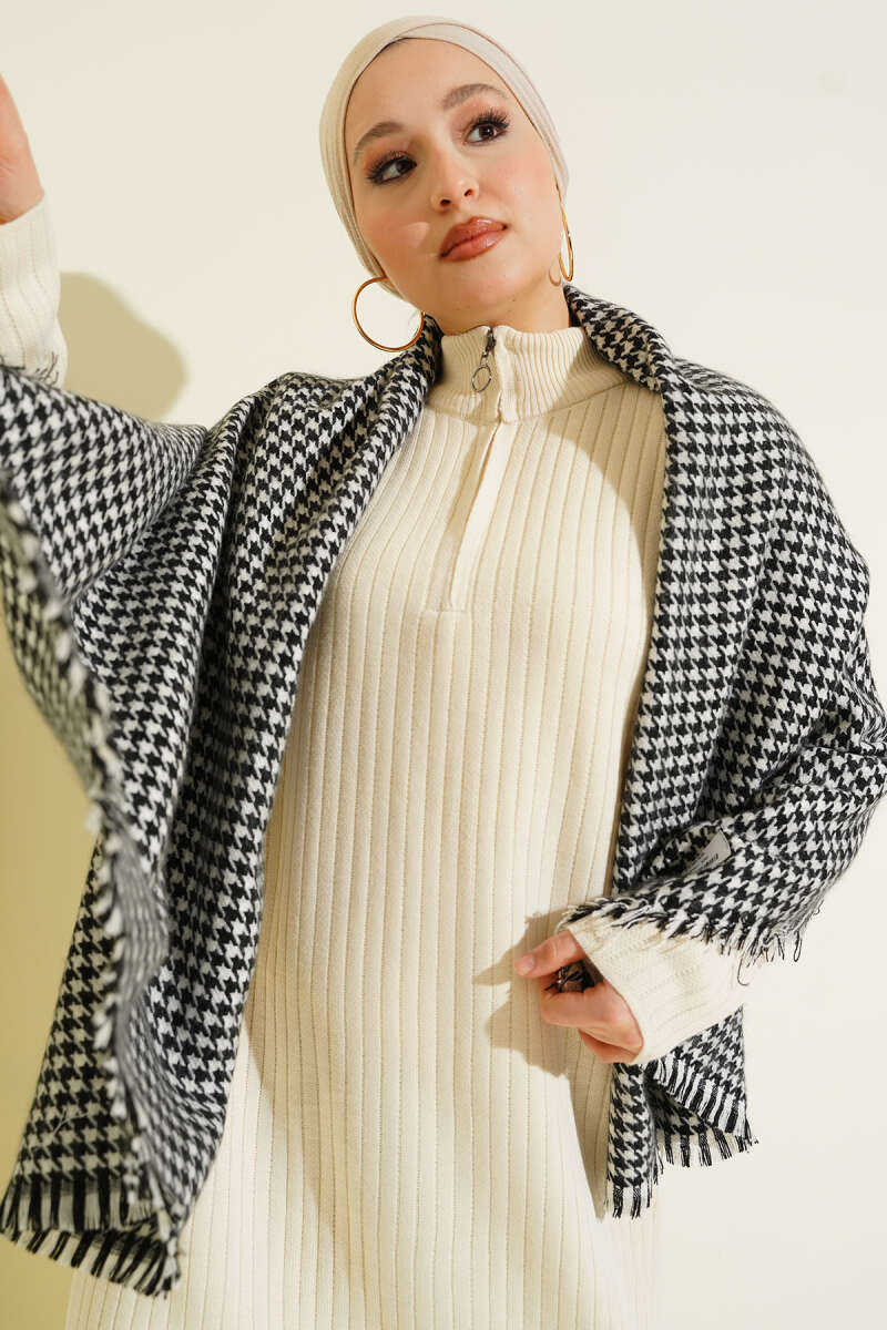 Çizgi Detaylı Omuz Şalı Zümrüt