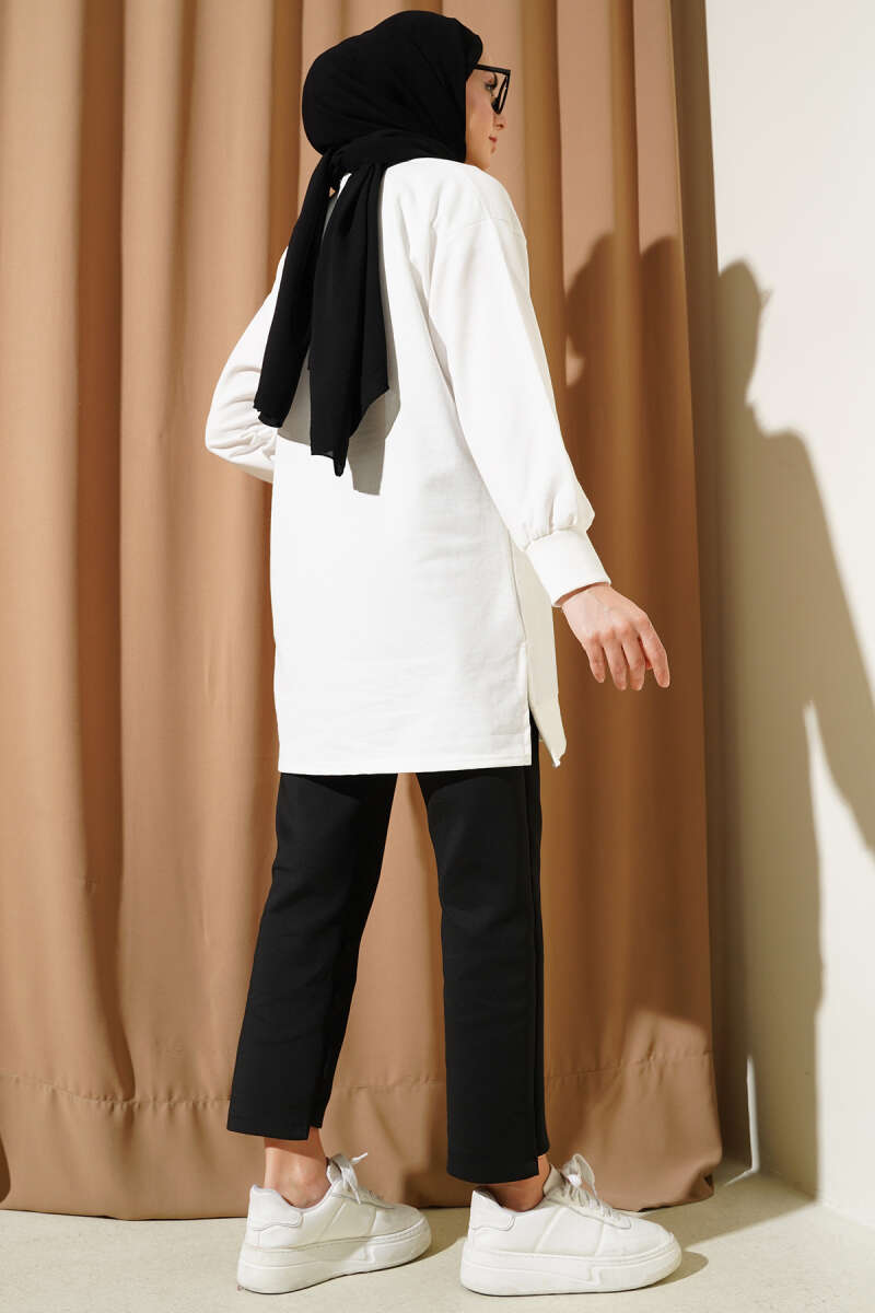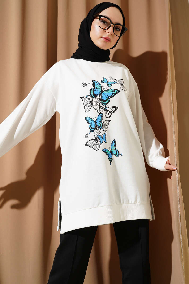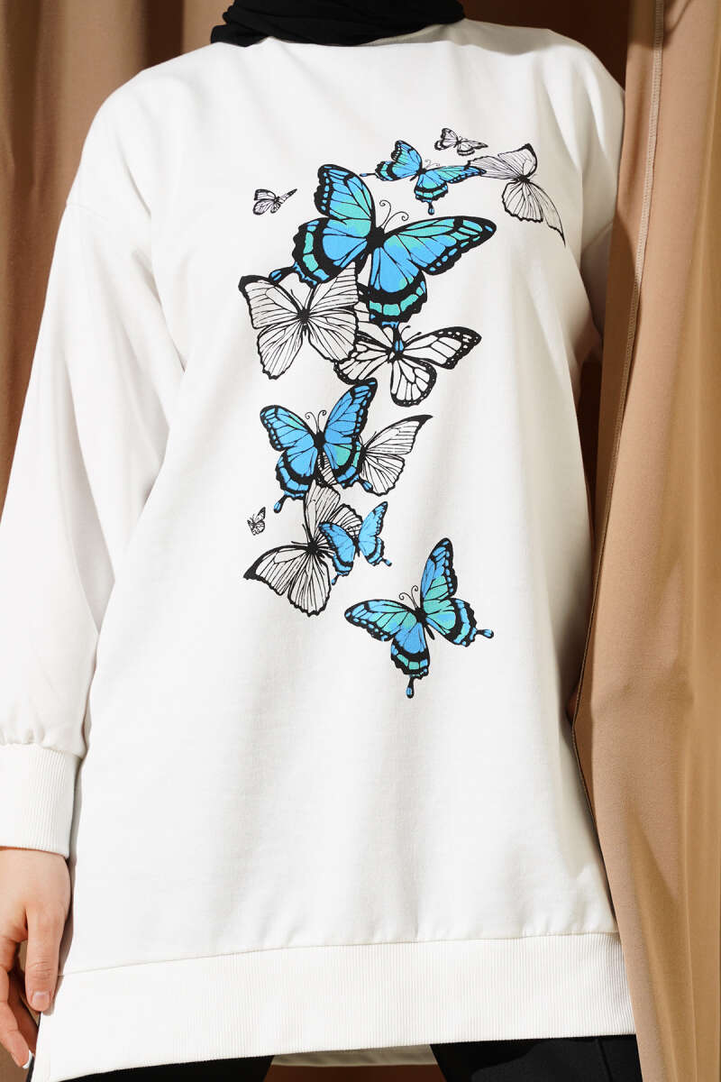 Kelebek Baskılı İki İplik Tunik Beyaz