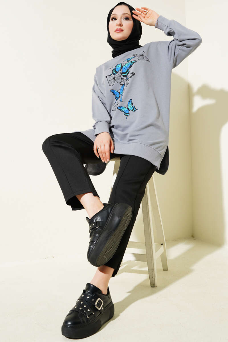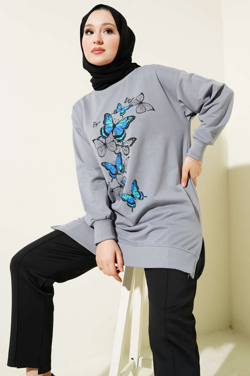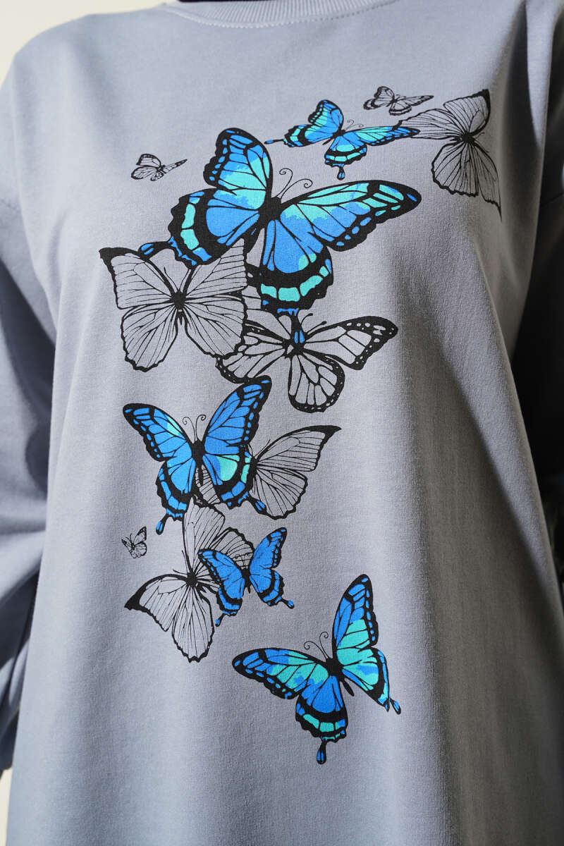 Kelebek Baskılı İki İplik Tunik Kırmızı