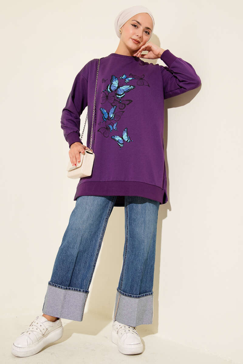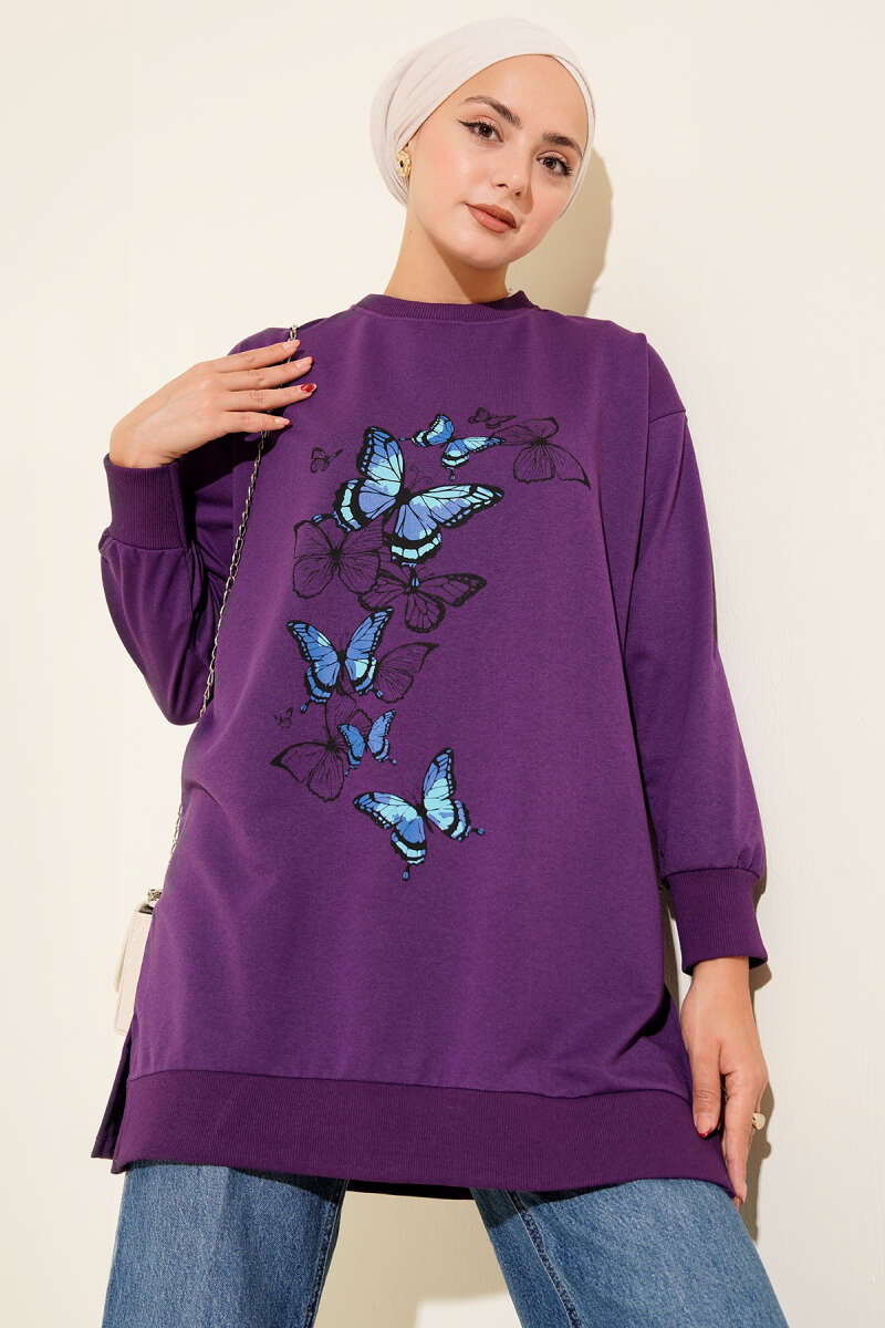 Elegance Baskılı İki İplik Tunik Bordo
