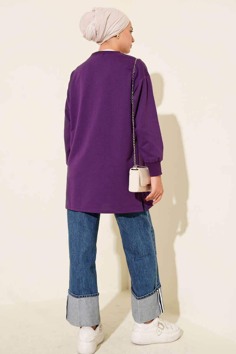 Yarım Fermuarlı Basıc Uzun Tunik Pembe