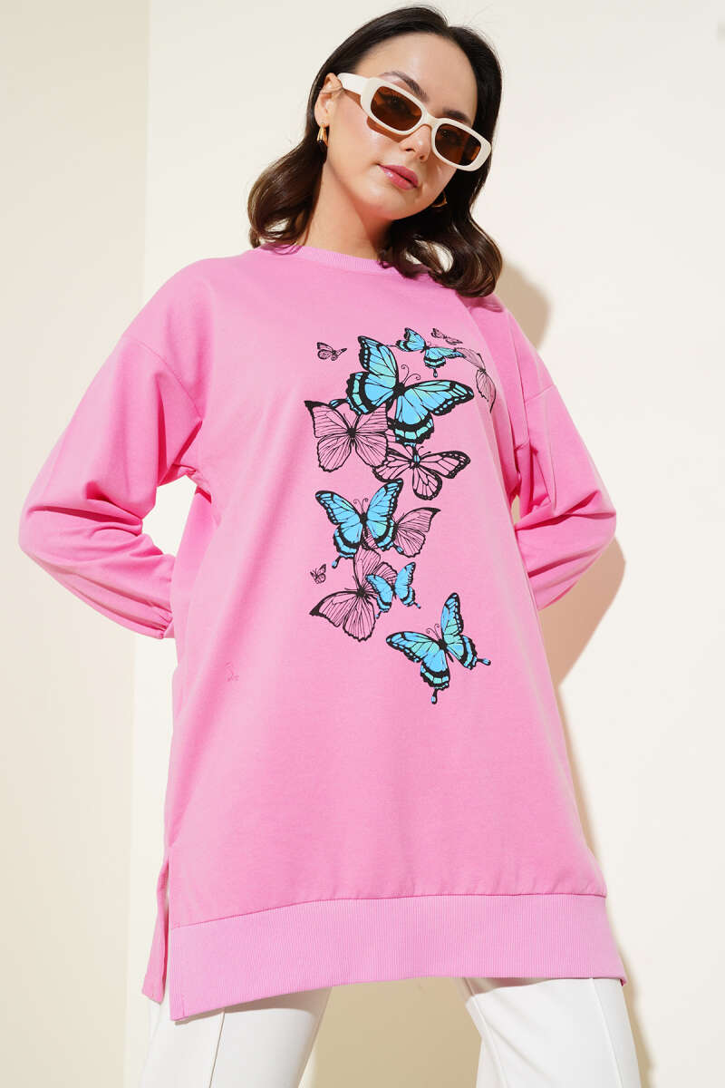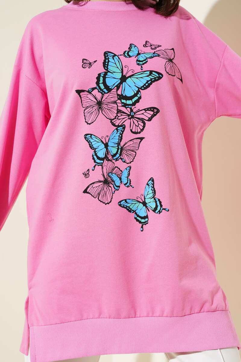Kelebek Baskılı İki İplik Tunik Lacivert