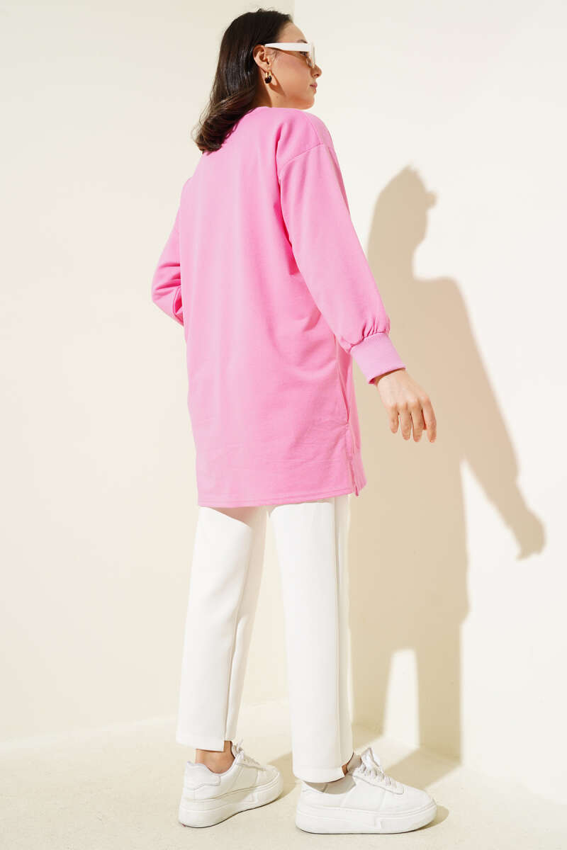 Duble Kol İp Bağcıklı Tunik Fuşya