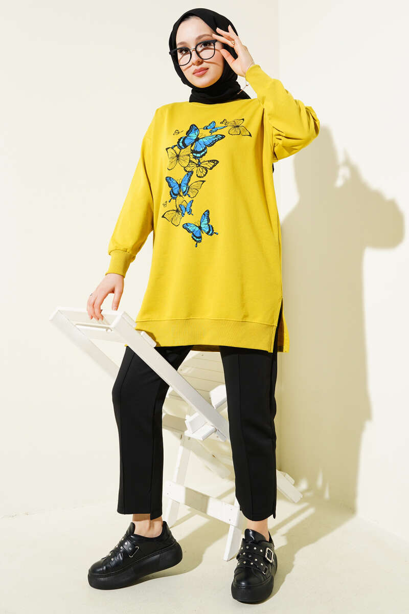 Dik Yaka Çizgili Tunik Zümrüt Yeşil