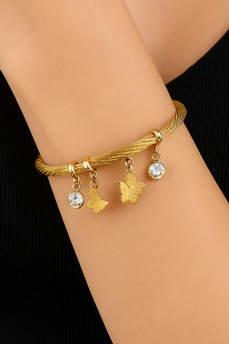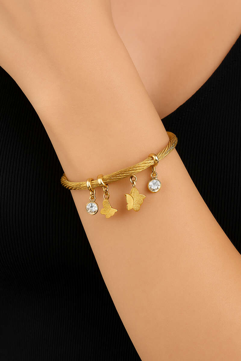 Çiçek Su Yolu Taşlı Bileklik Gold