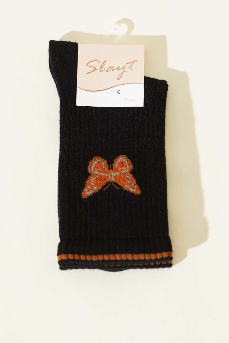Kelebek Detaylı Kadın Soket Çorap Siyah