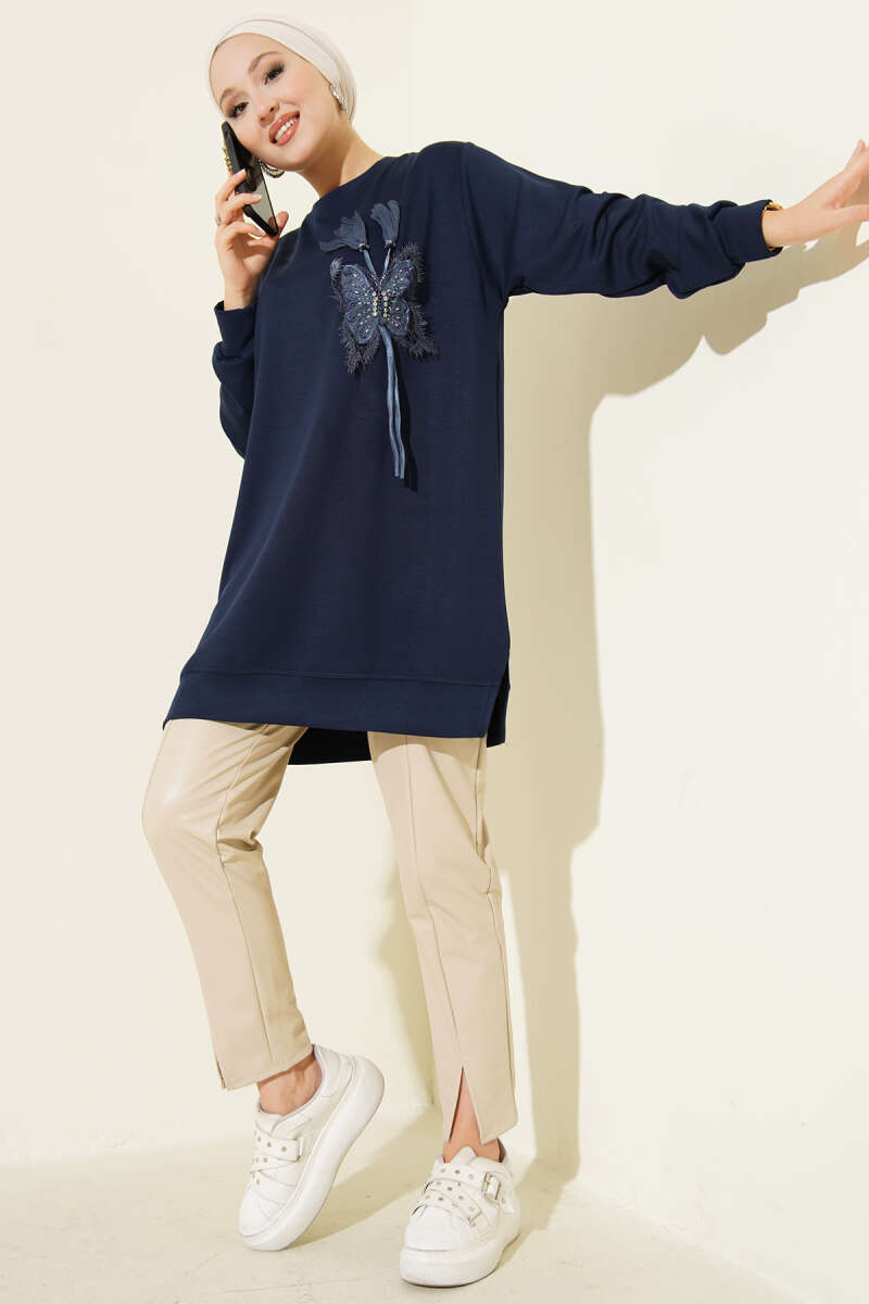 Loyşa Düşük Omuz Basic Tunik Lacivert