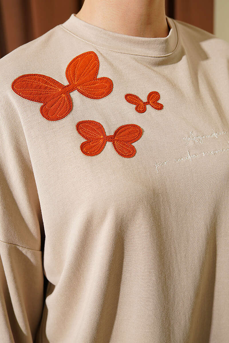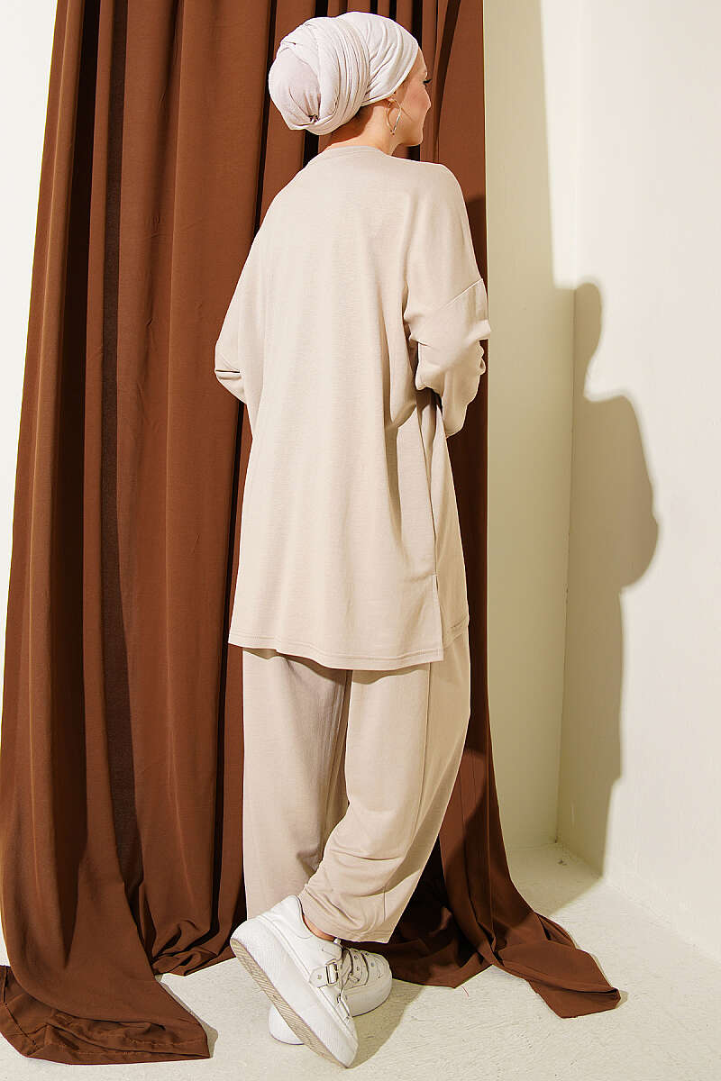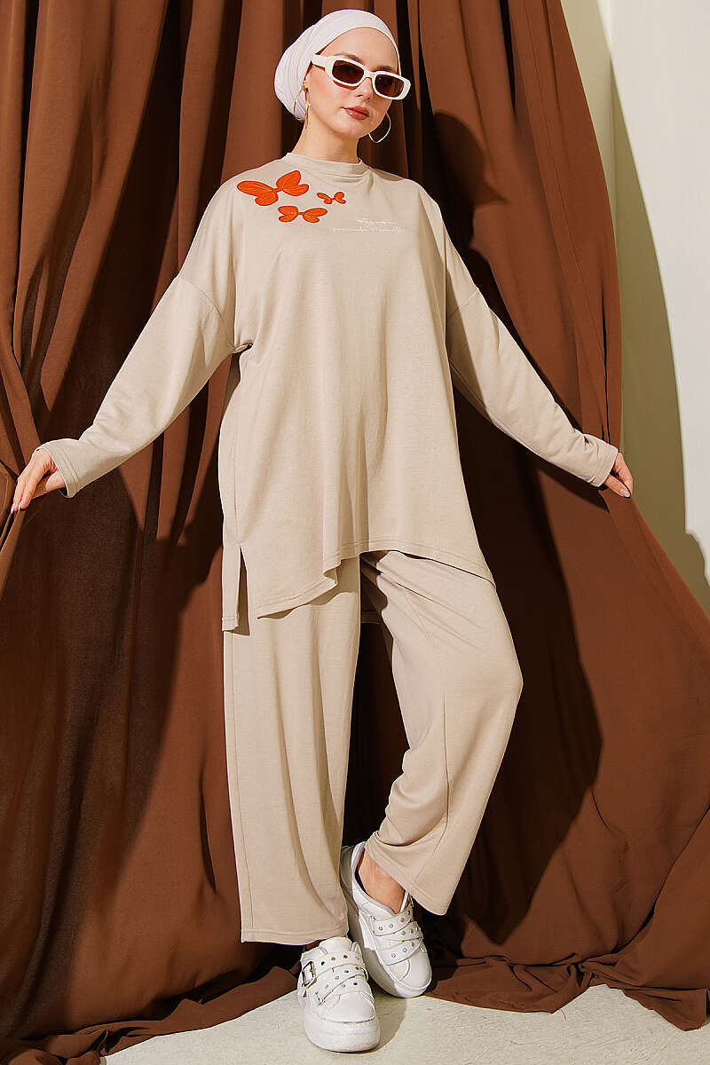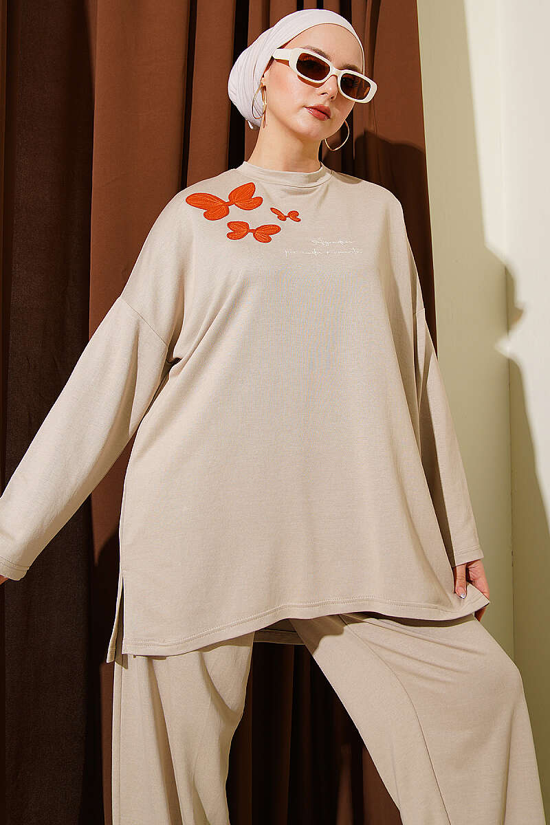 Kol Manşeti Gül Detaylı İkili Takım Bej