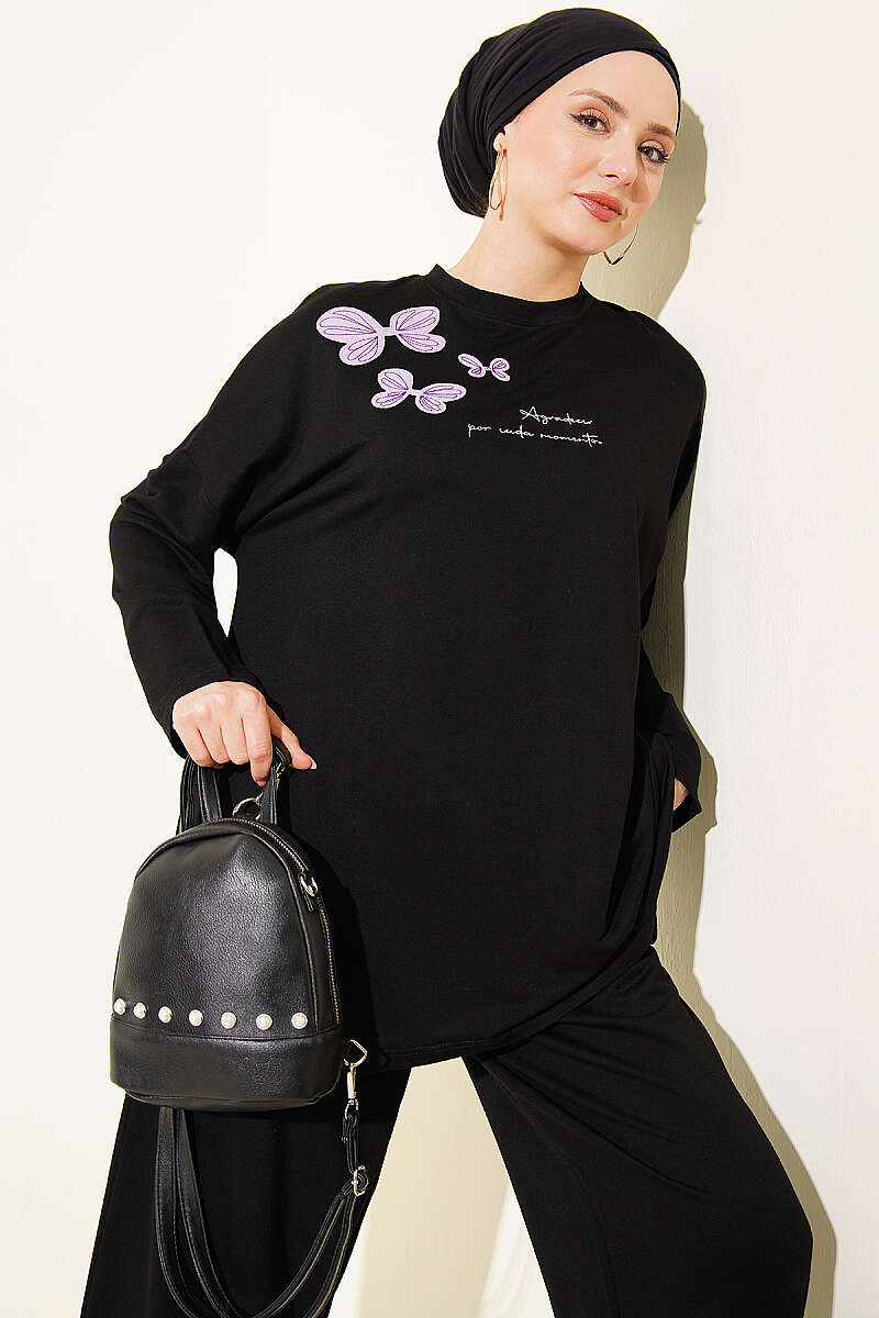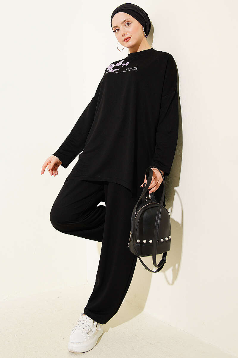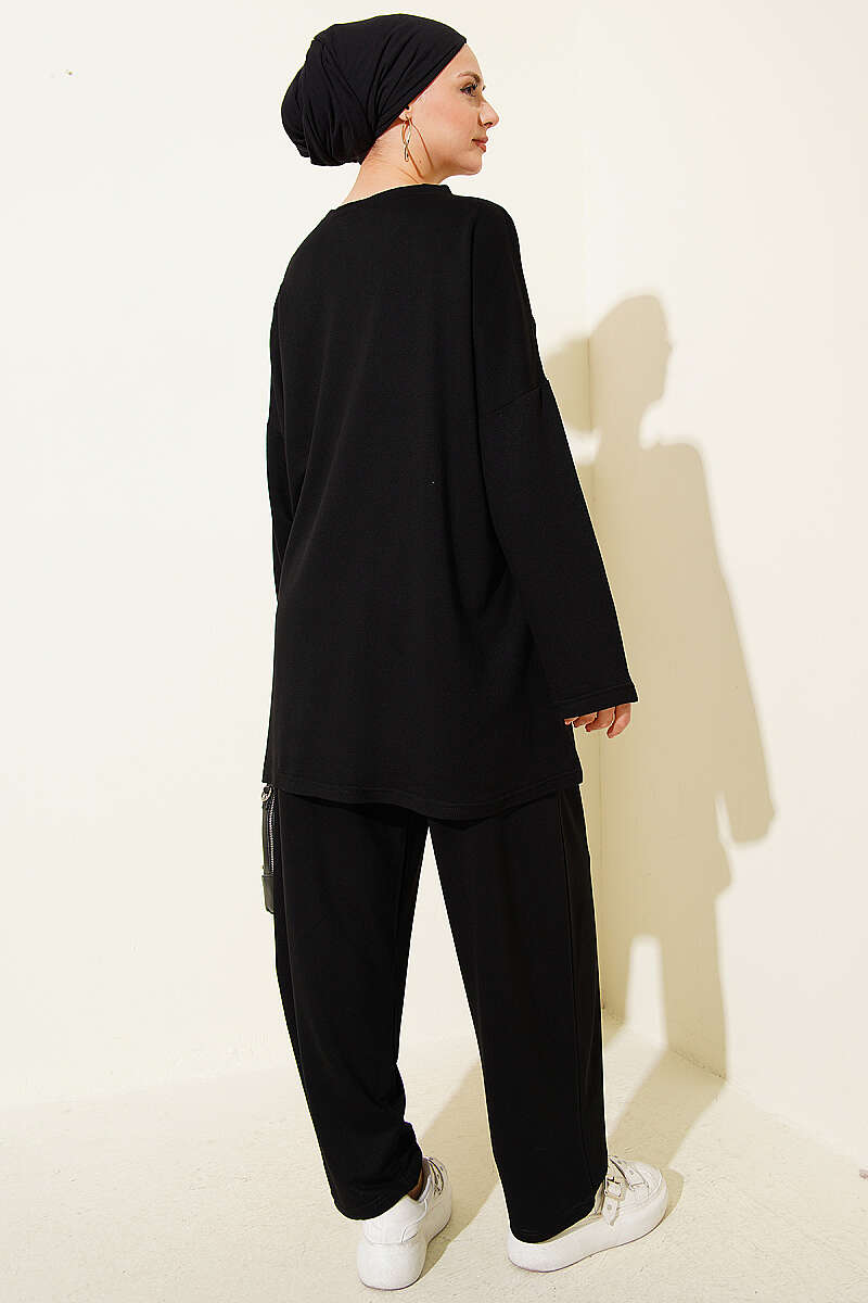 Gold Düğmeli Poliviskon Etekli Takım Siyah