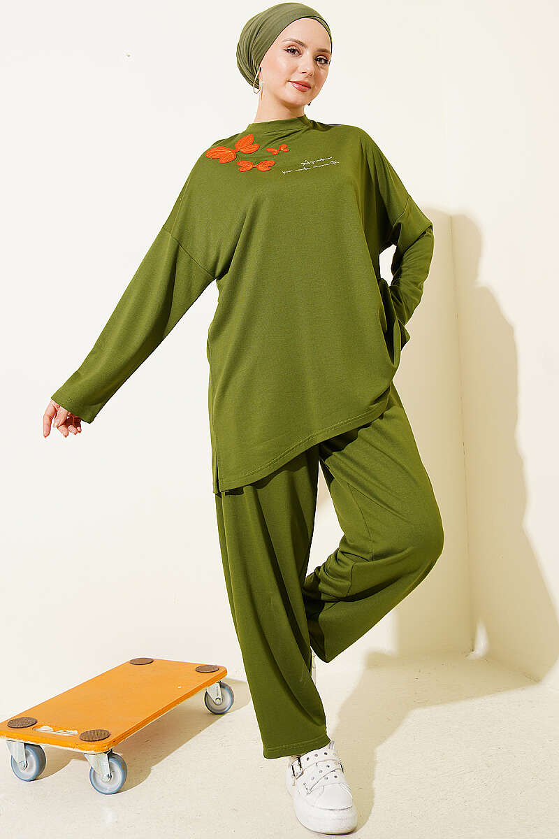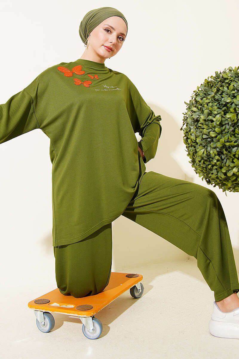Kelebek İşlemeli İkili Takım Yeşil