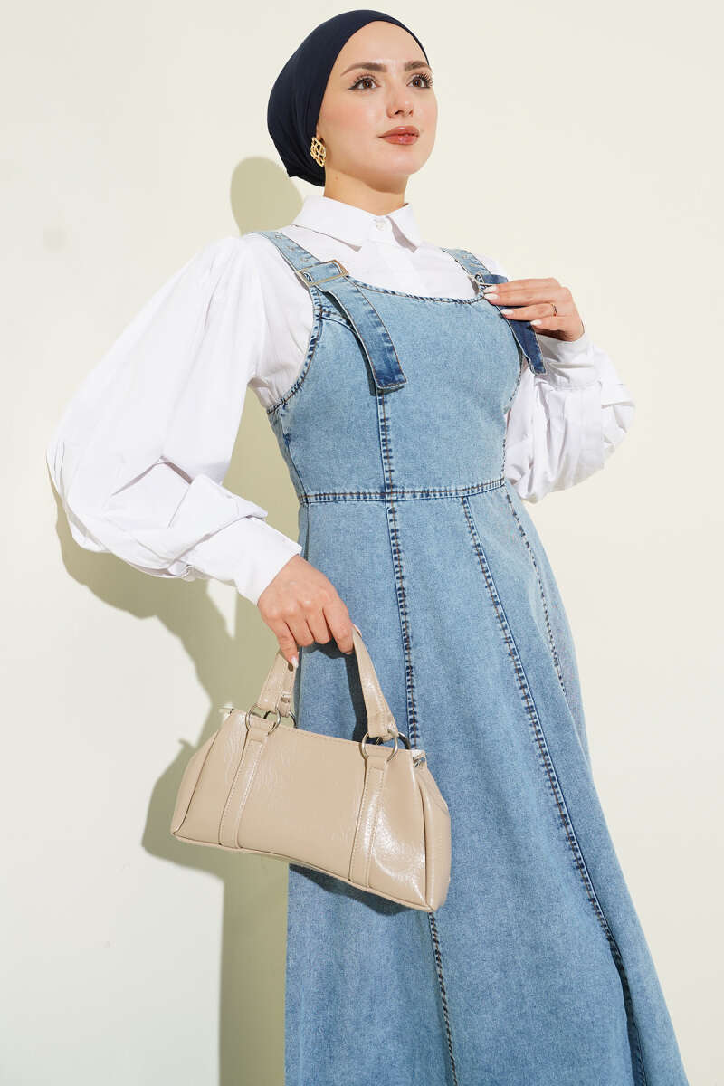 Yandan Cepli Kot Elbise Kot Mavisi