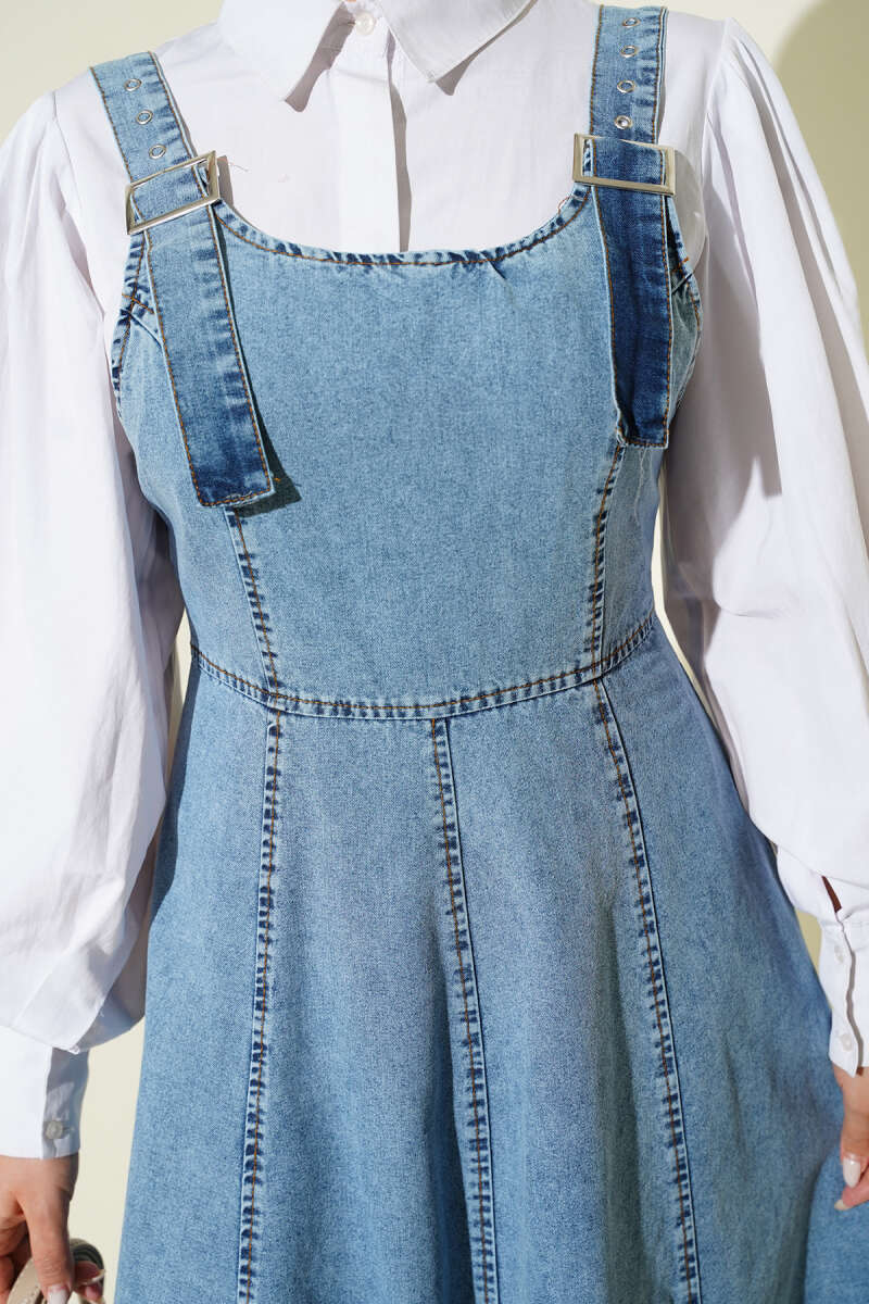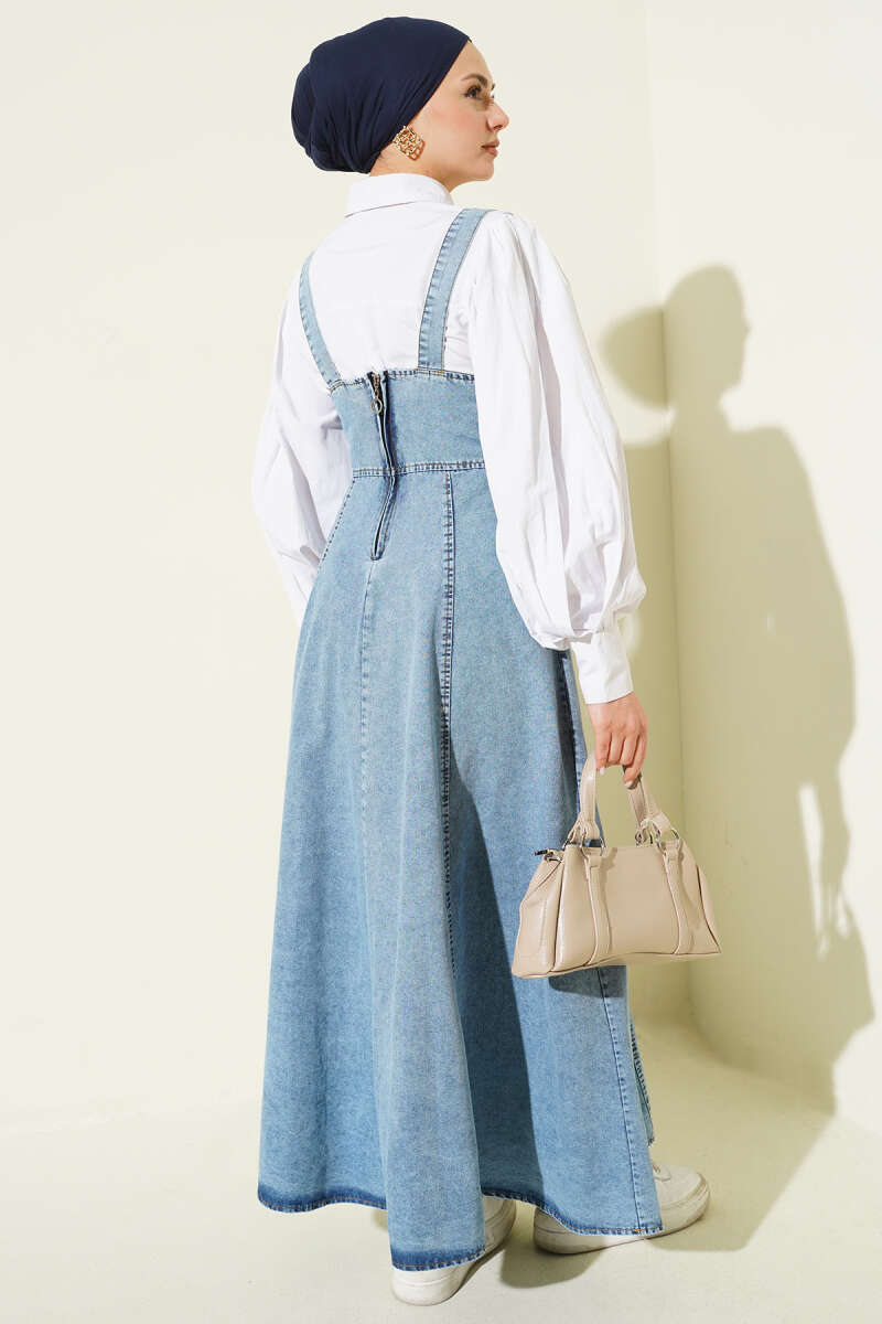 Kemer Askılı Fermuarlı Kot Jile Lacivert