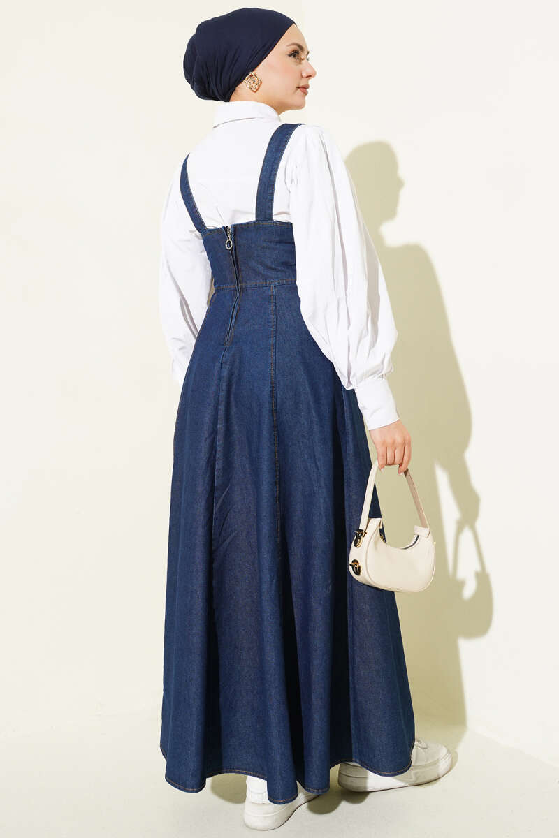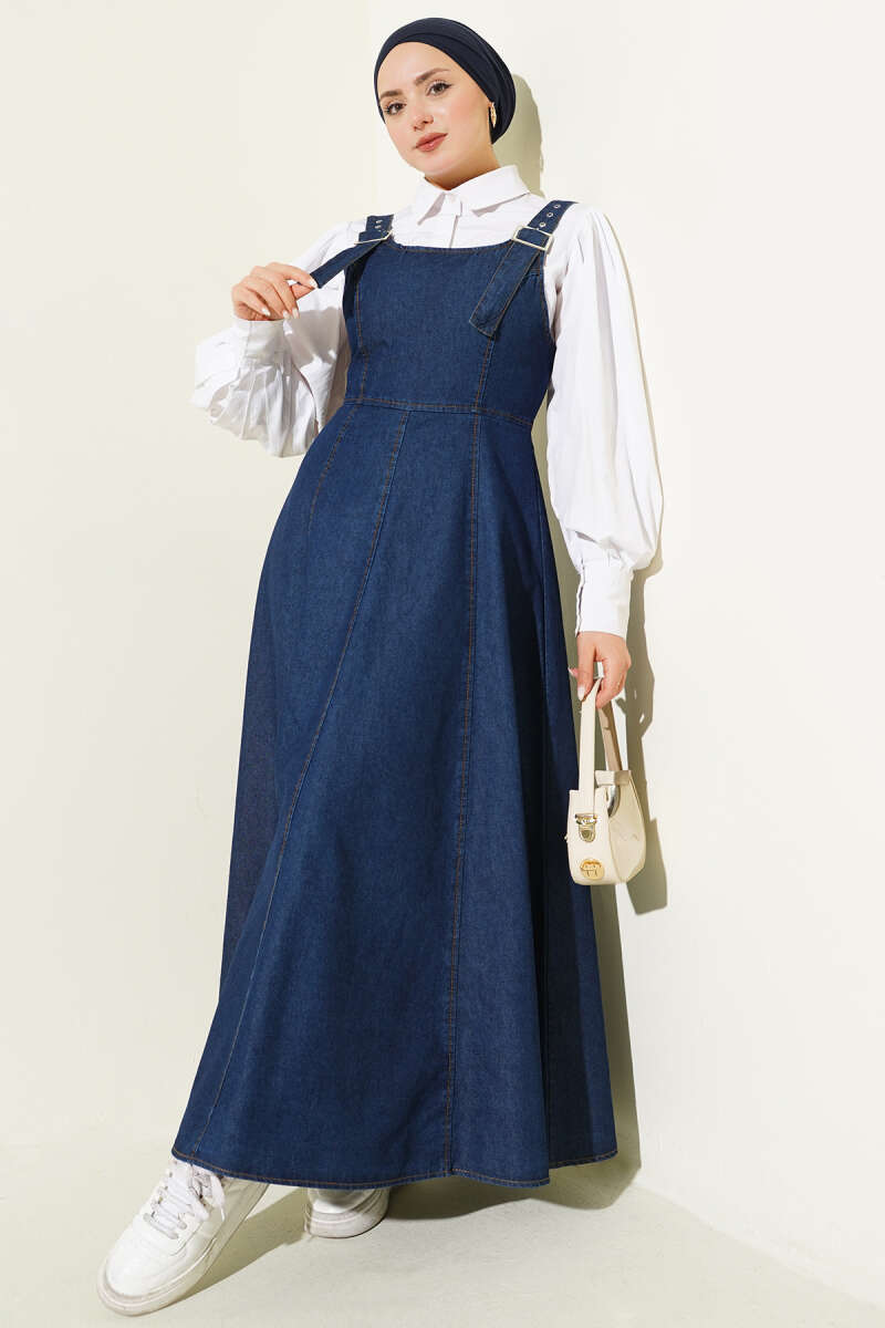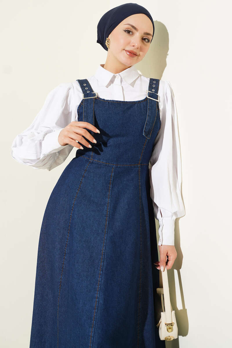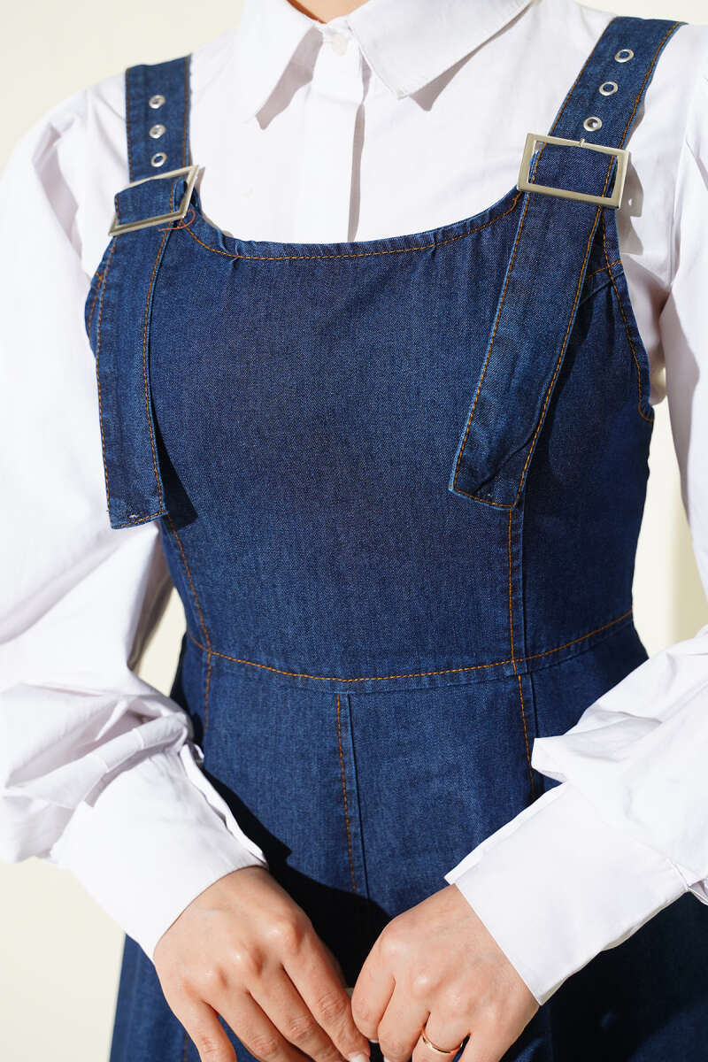 Kemer Askılı Fermuarlı Kot Jile Açık Mavi