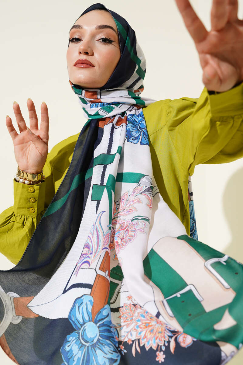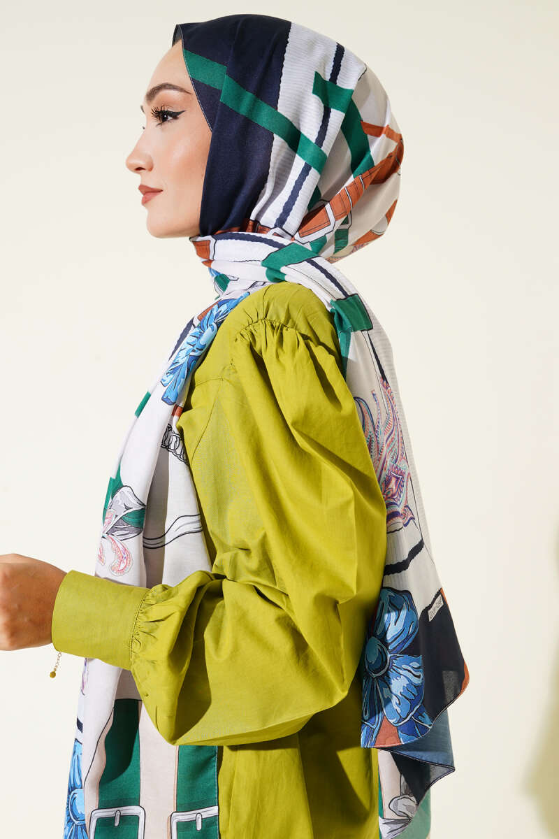 Karışık Desenli Eşarp Zümrüt
