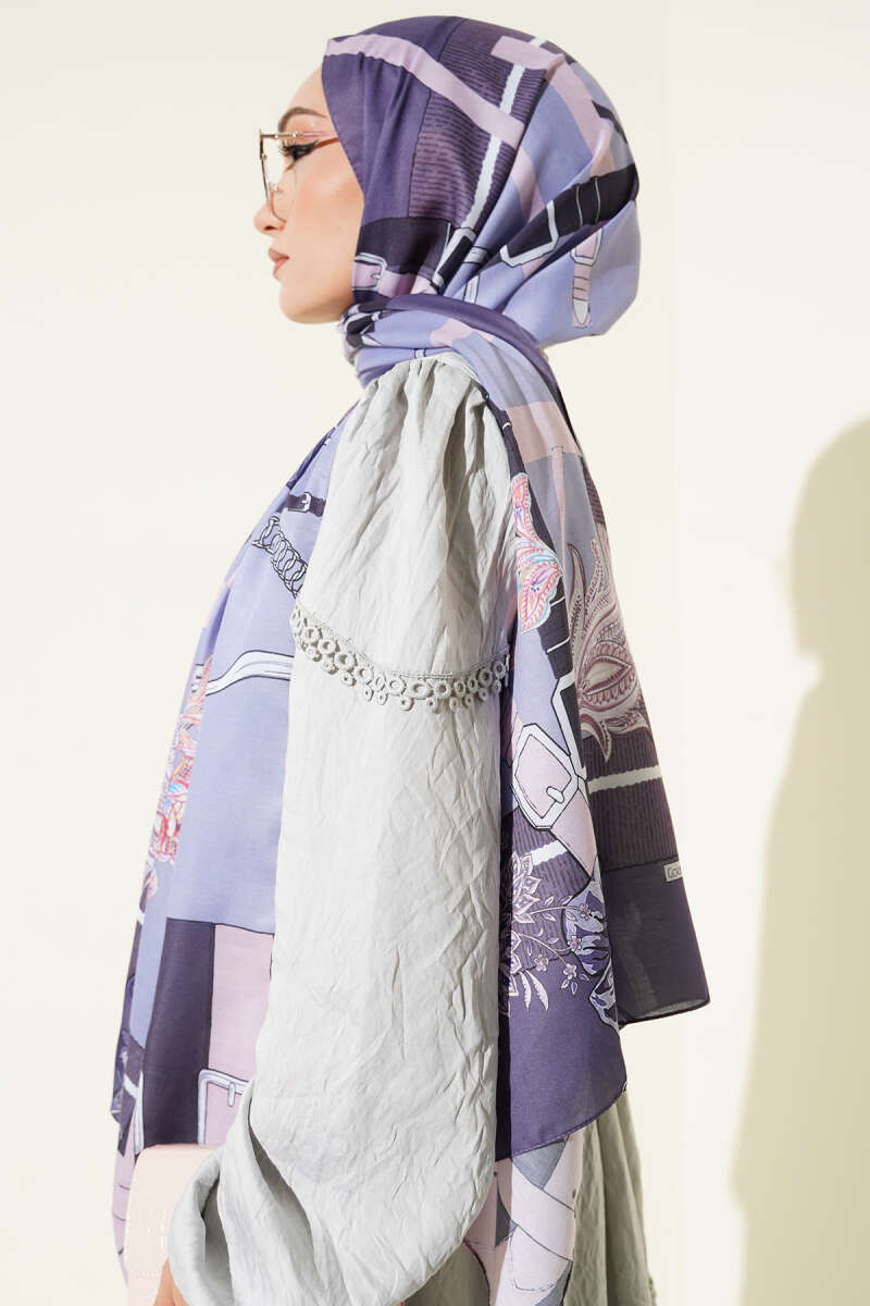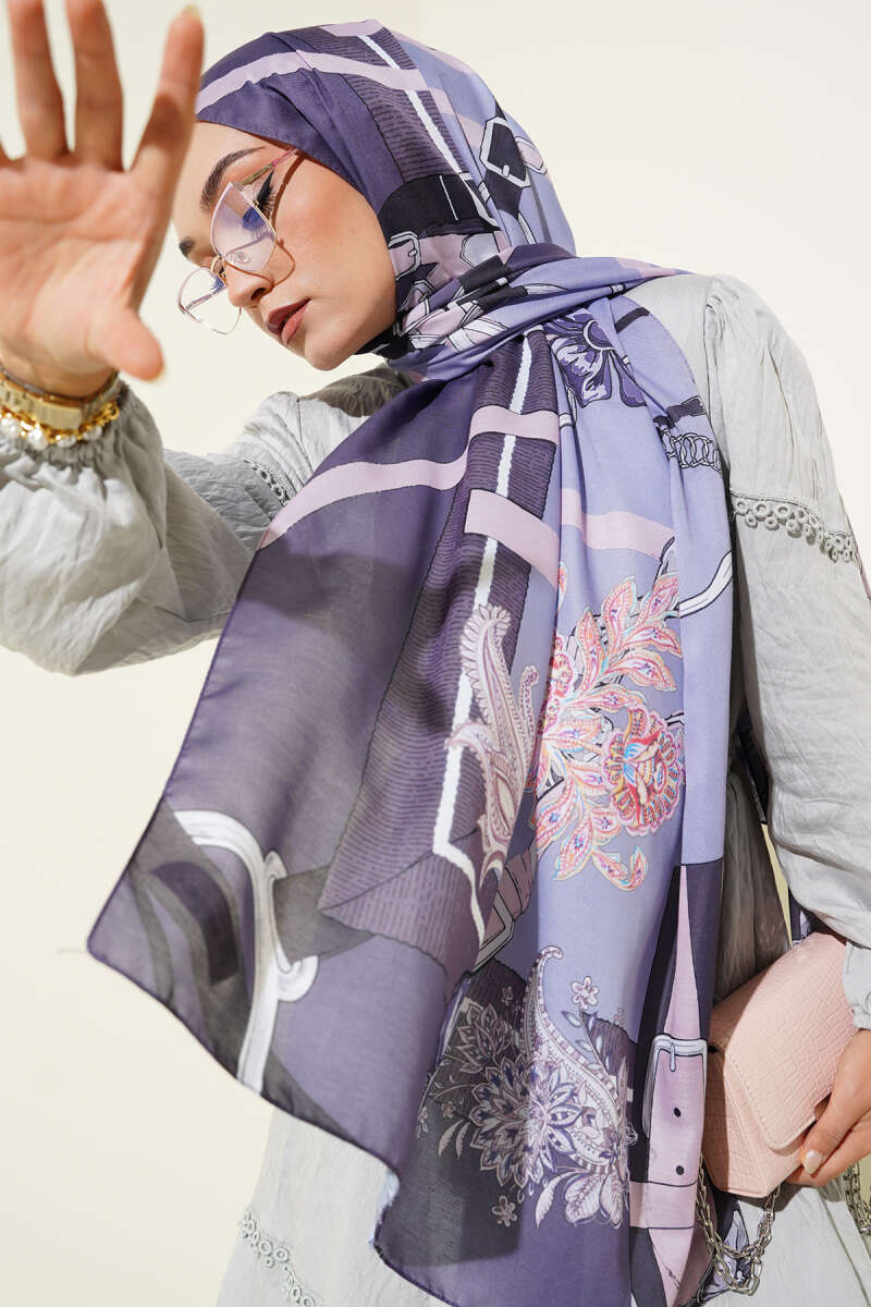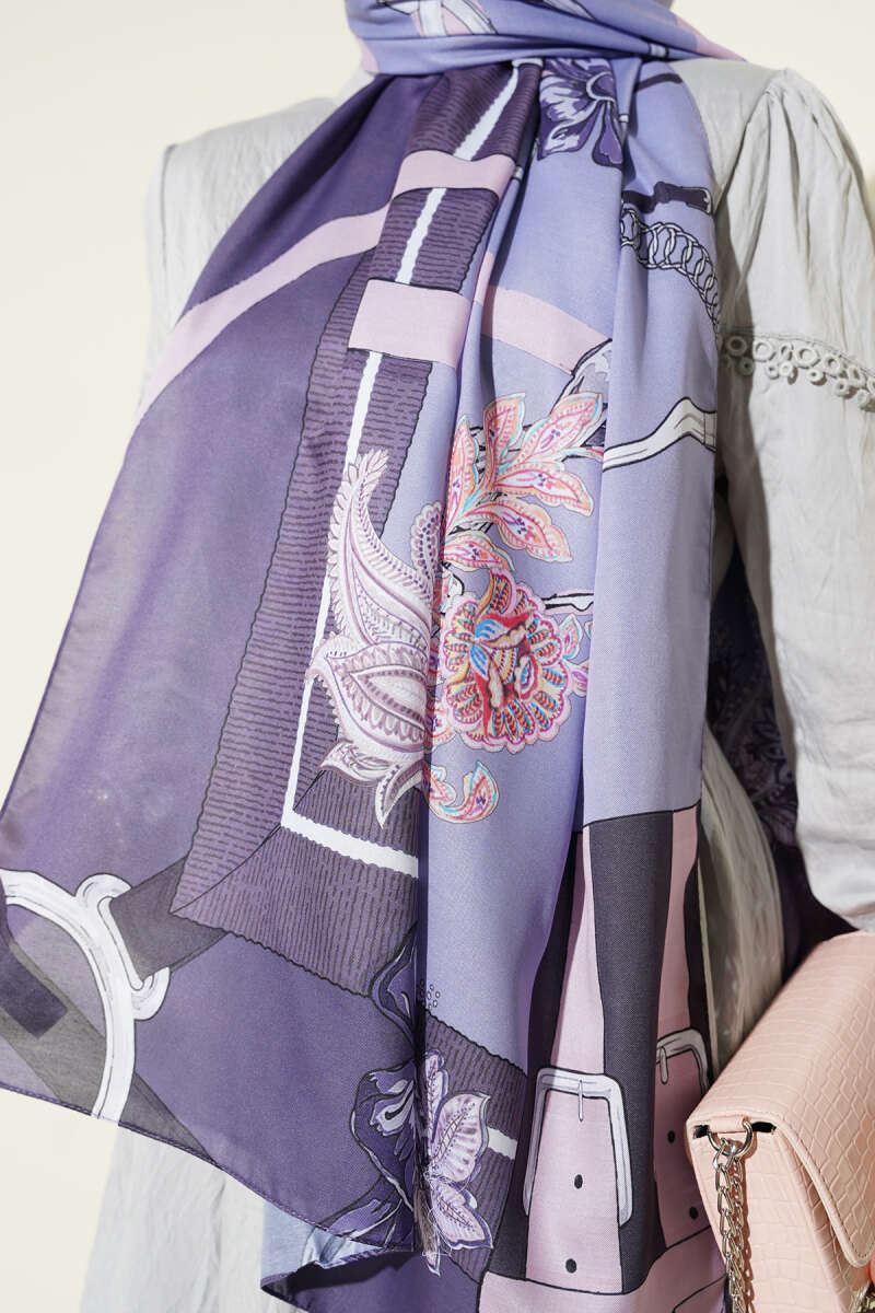 Mini Boncuk Detaylı Eşarp Lila