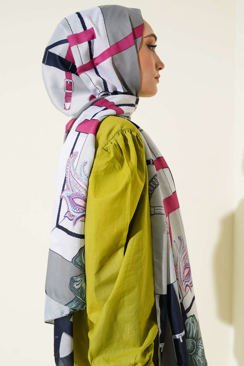 Mini Boncuk Detaylı Eşarp Kayrak Grisi