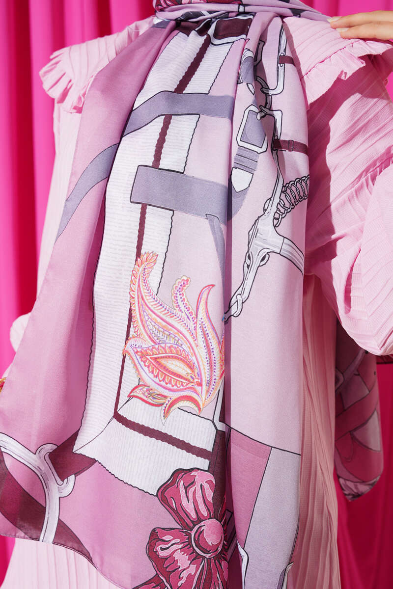 Mini Boncuk Detaylı Eşarp Gül Kurusu