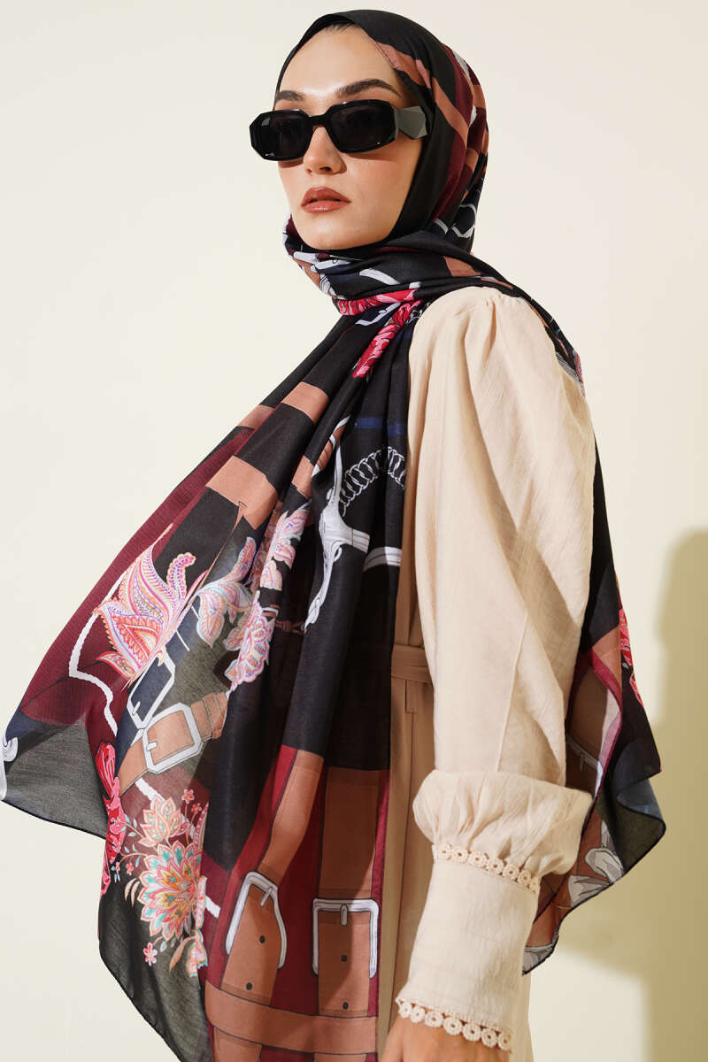 Mini Boncuk Detaylı Eşarp Kırmızı