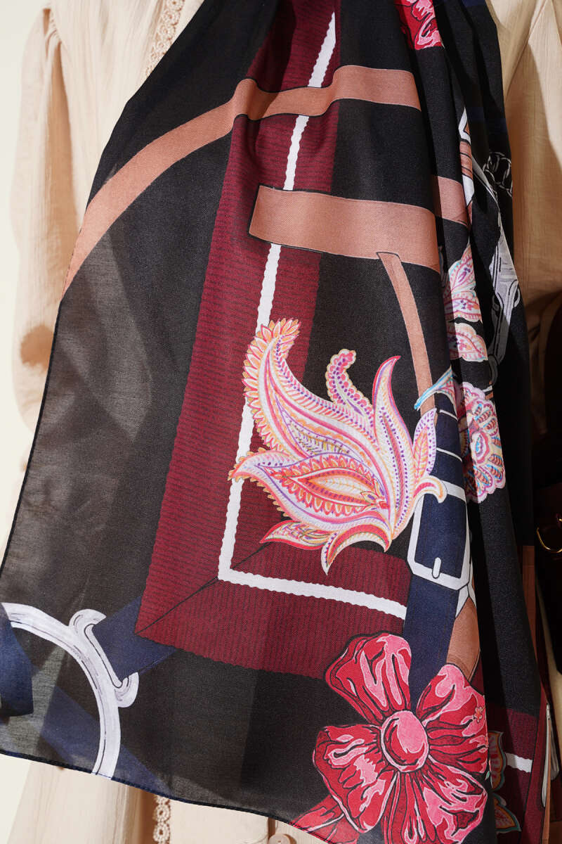 Çiçek Desenli Soft Bambu Kraş Şal Zümrüt