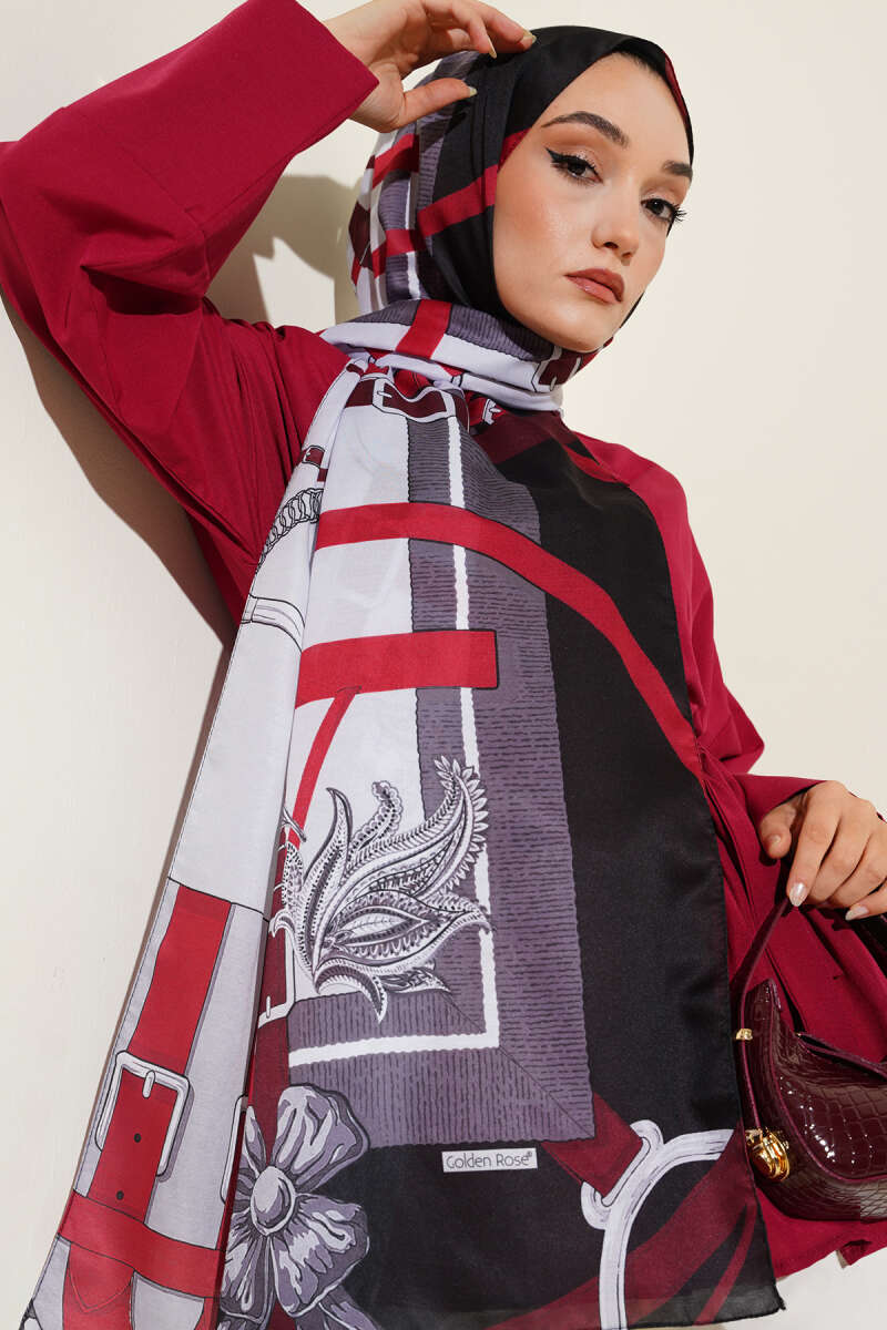 Mini Boncuk Detaylı Eşarp Kırmızı