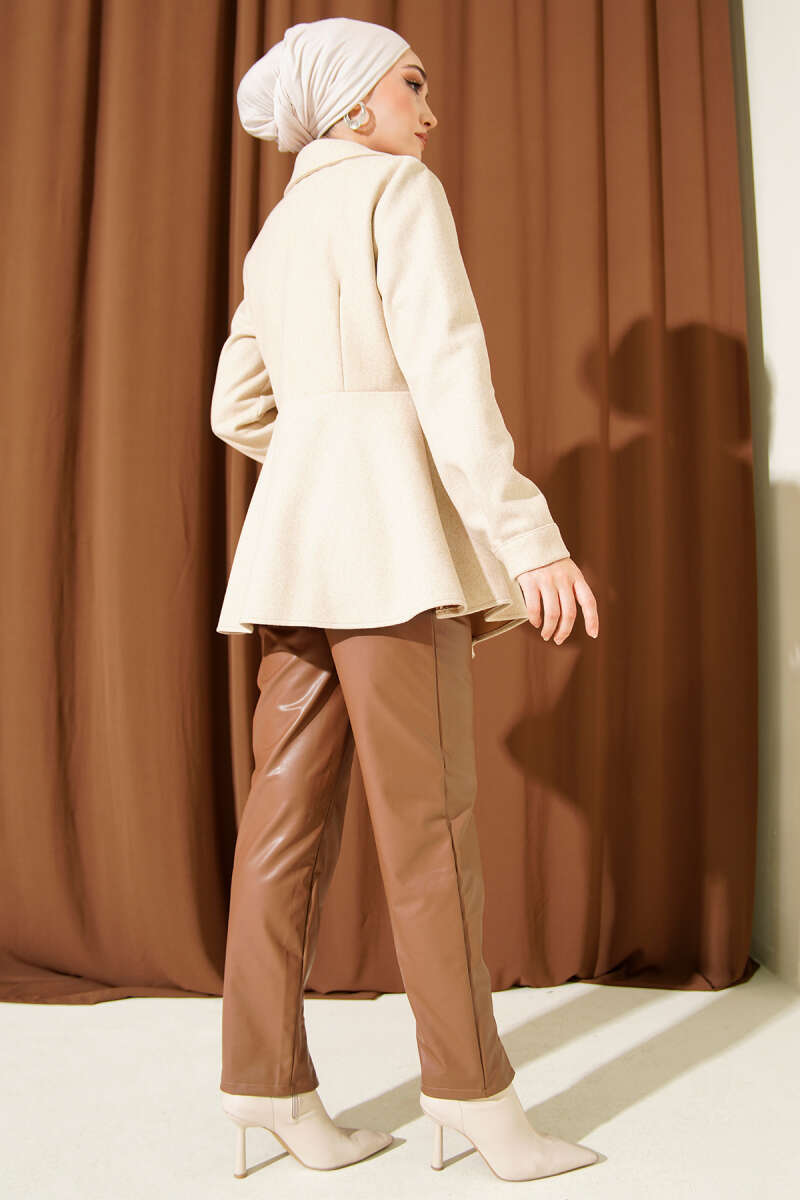 Düğmeli Gömlek Yaka Keçe Ceket Kahve